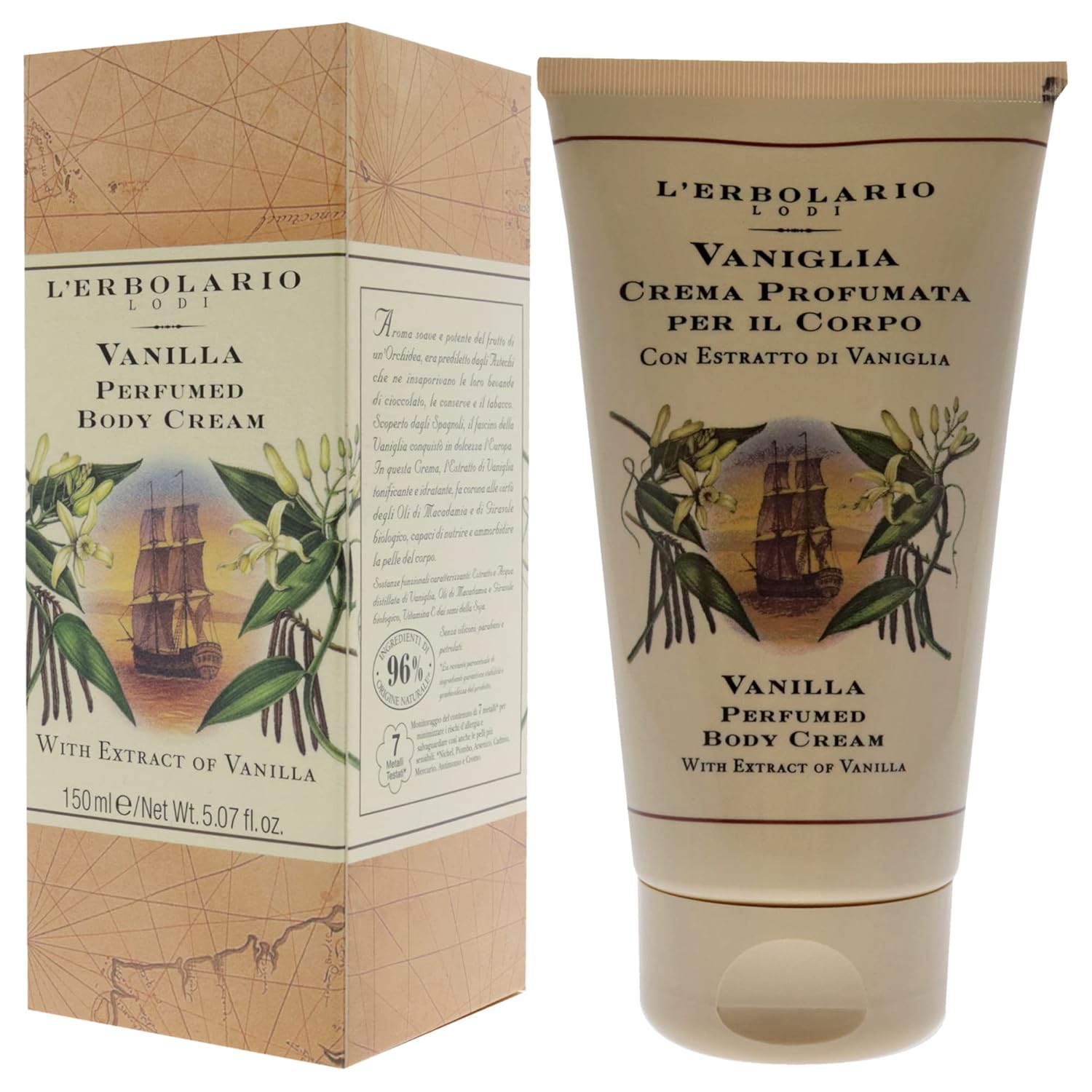L'Erbolario Vanilla Perfumed Body Cream - Long Lasting Scented Body Cream for Women - Perfume Hydrating Body Moisturizer - Nourishing and Moisturizing Body Butter for Dry Skin - 5.07 oz