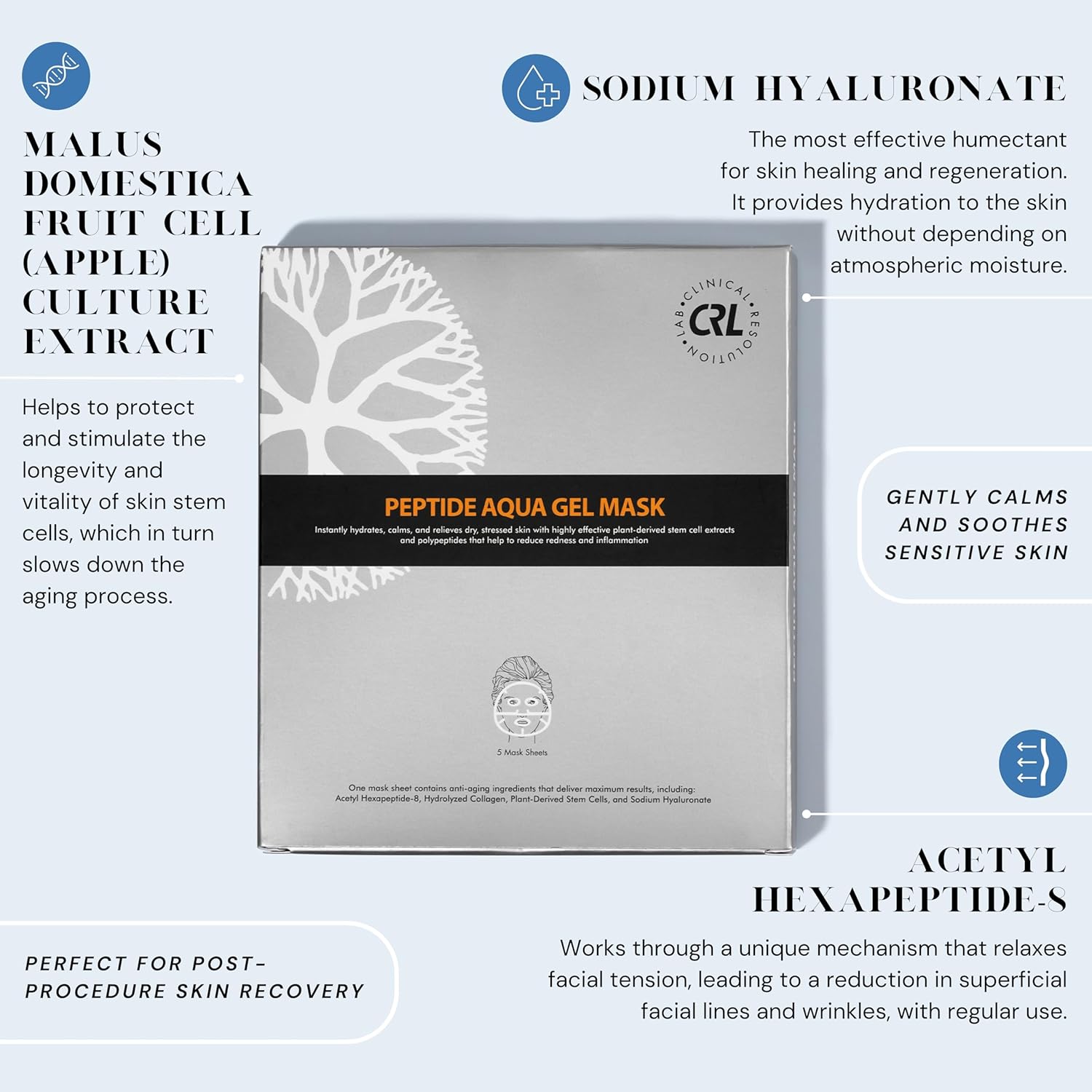 Clinical Resolution CRL Peptide Aqua Gel Mask 5 Pack, Instant Hydration, Soothing, Cooling, Healing, Post-Treatment, Post Microneedling, Reduce Redness and Stinging Feeling