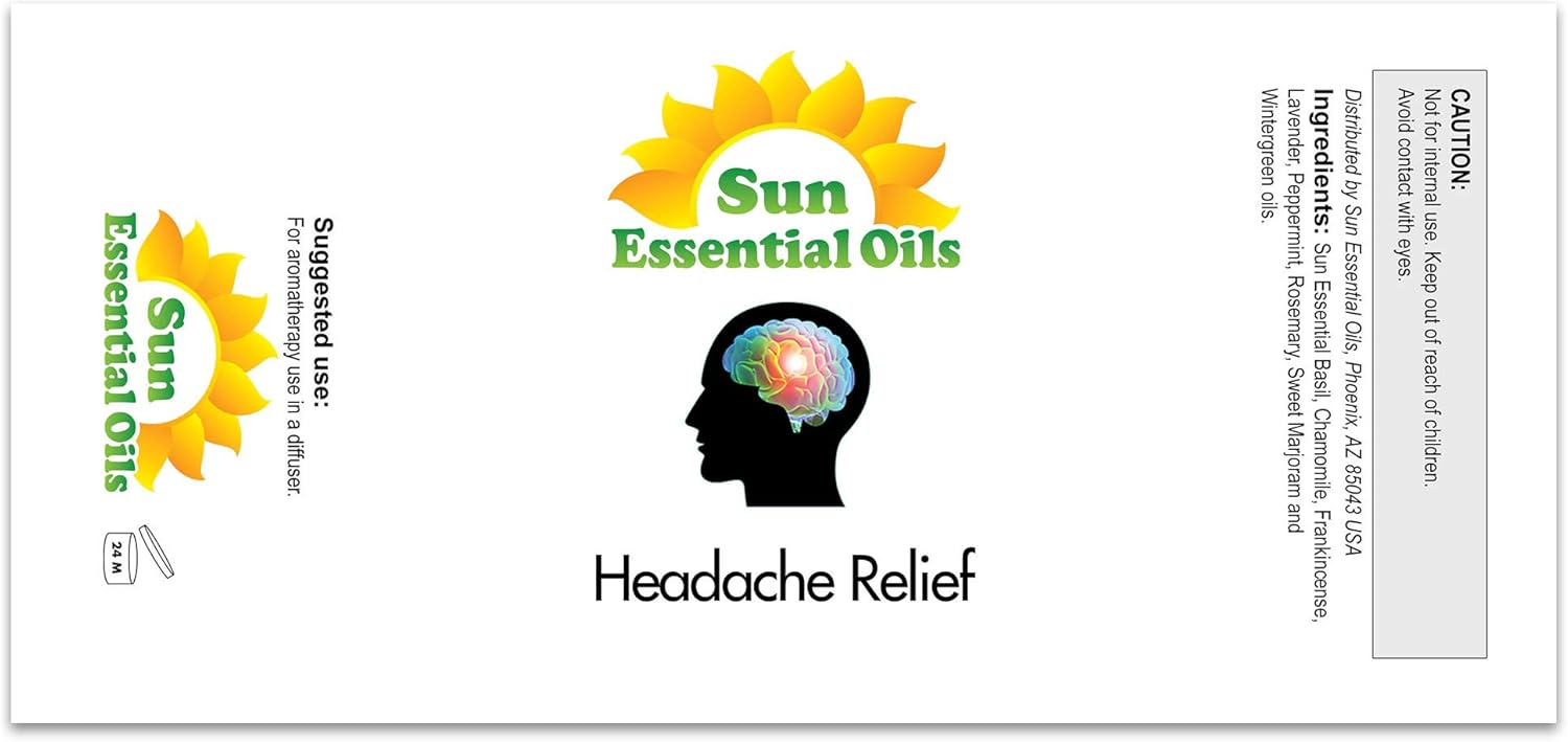 - Sun Essentials Offers Headache Relief Blend Oil in a Variety of Sizes: Get Headache Relief Blend essential oil in 4oz, 8oz, and 16oz amber bottles. We also have a huge variety of scents and blends