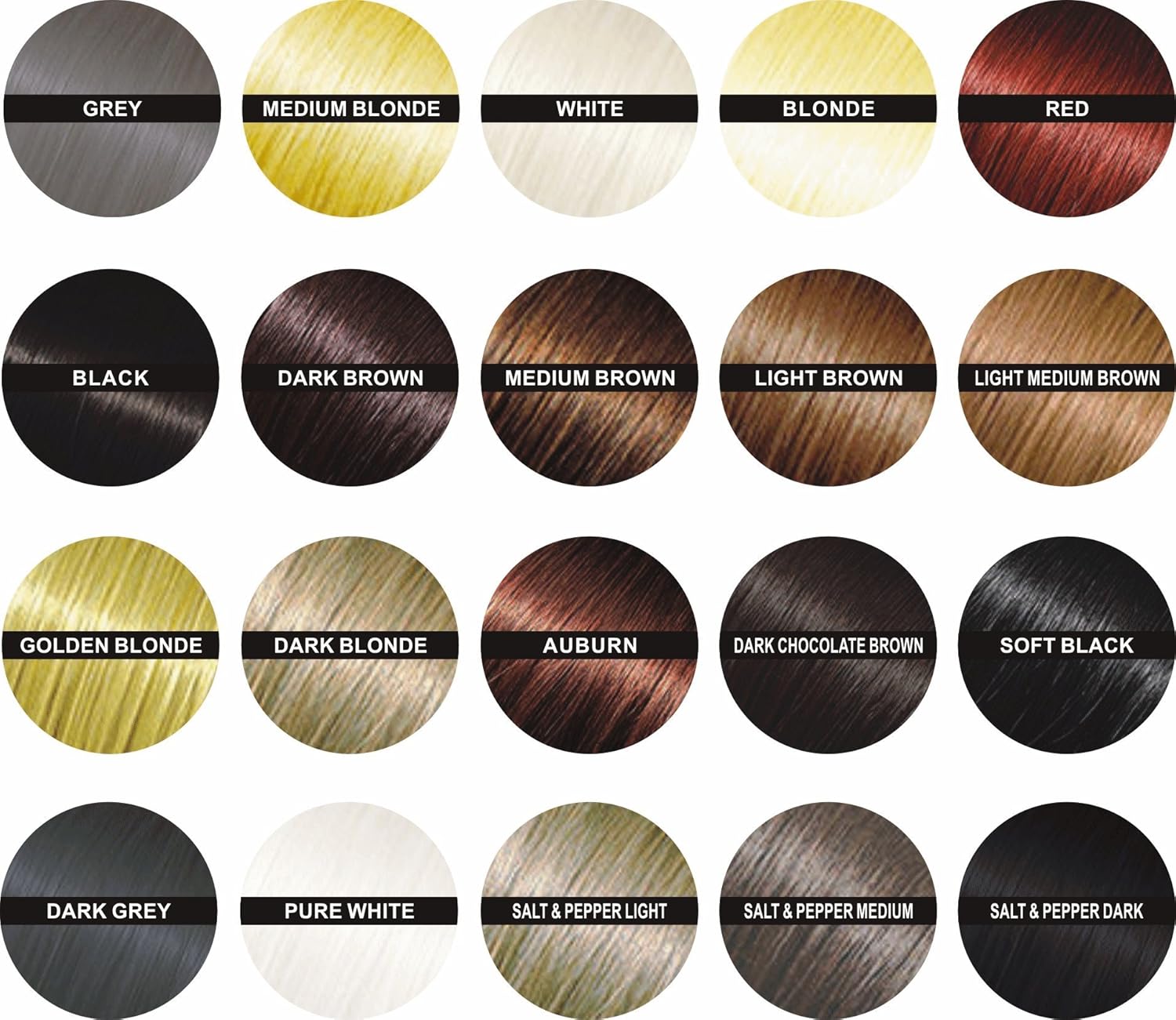 - We also offer 5 Salt & Pepper and Grey & Pepper shades. Salt & Pepper Colors Explained: Light Salt & Pepper: Mostly Light Brown with white/grey highlights. Medium Salt & Pepper: Mostly Dark Chocolate Brown with white/grey highlights. Dark Salt & Pepper: Mostly Soft Black with white/grey highlights. Light Grey & Pepper: Mostly a mid tone grey with dark highlights. Dark Grey & Pepper: Mostly a dark grey with light highlights.