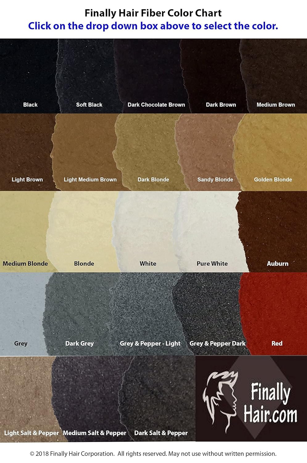 - The Right Shade: Our color chart is made up of the actual hair fibers color matched by a professional photographer. When selecting one of the 23 available shades, always seek to match your hair at the roots. If you think you're between two shades, always go with the darker option -- it'll look the most natural! Fibers that are too light it won't look natural. Matching the color is very important as the fibers will look out of place if they are not the correct color.