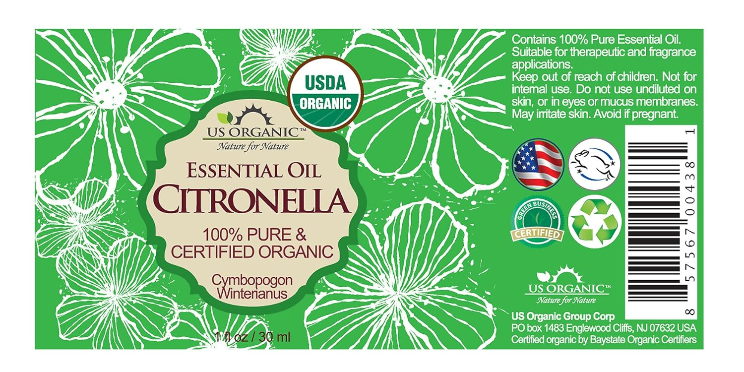 US Organic Citronella Essential Oil, USDA Certified, 100% Pure, 30 ml, Improved caps and droppers – Used for Skin Care, DIY Projects Like Candle Making and Much More