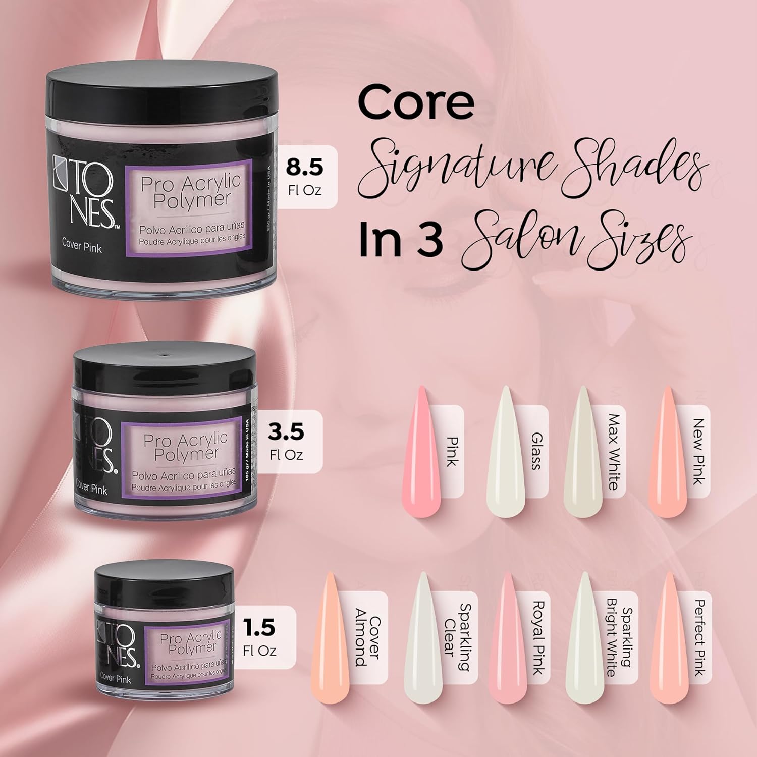 Tones Pro Acrylic Nail Powder, Cover Pink (Soft Nude Pink), (3.5 Fl Oz) - Long-Lasting & Non-Yellowing Polymer for Salon Quality Nail Extensions & 3D Art