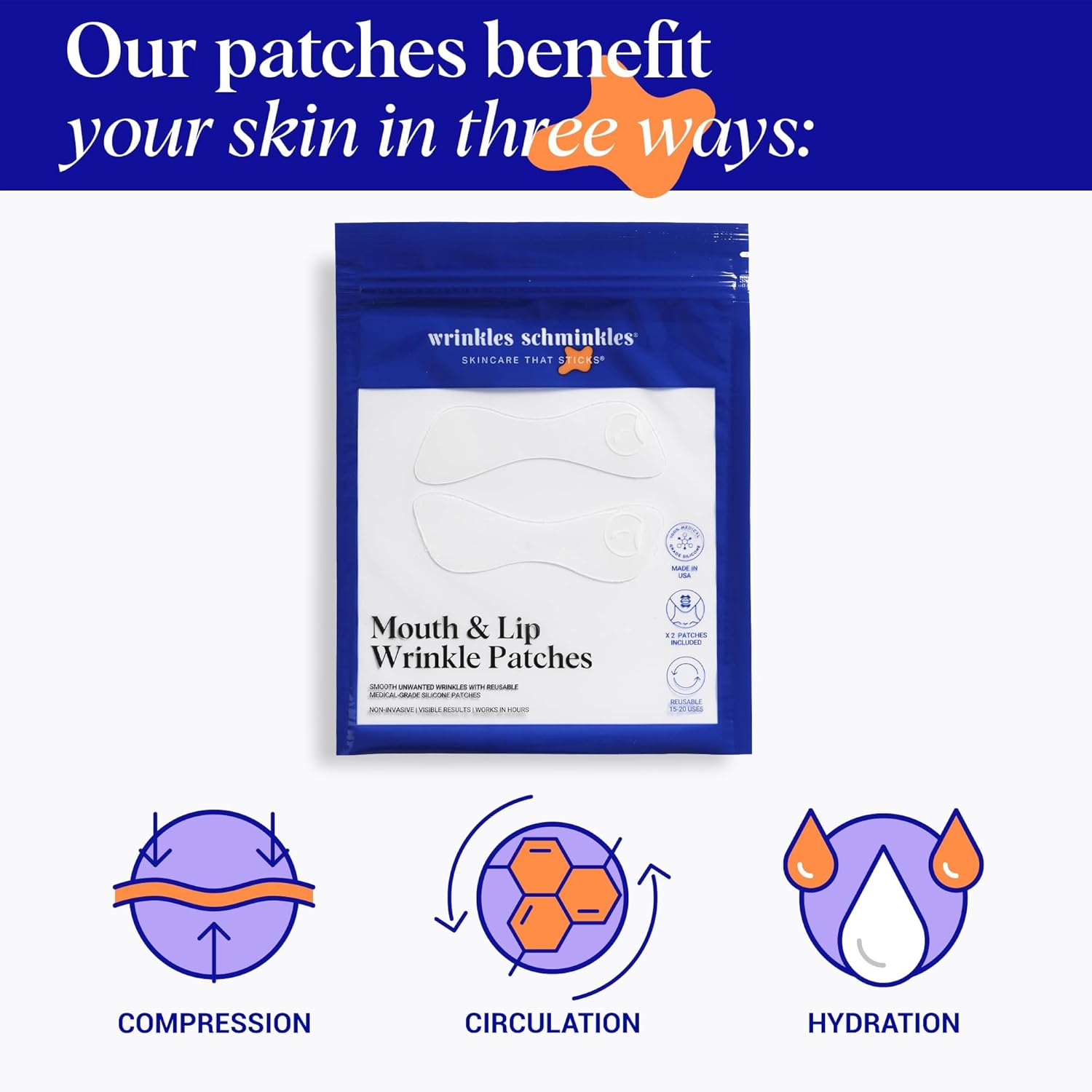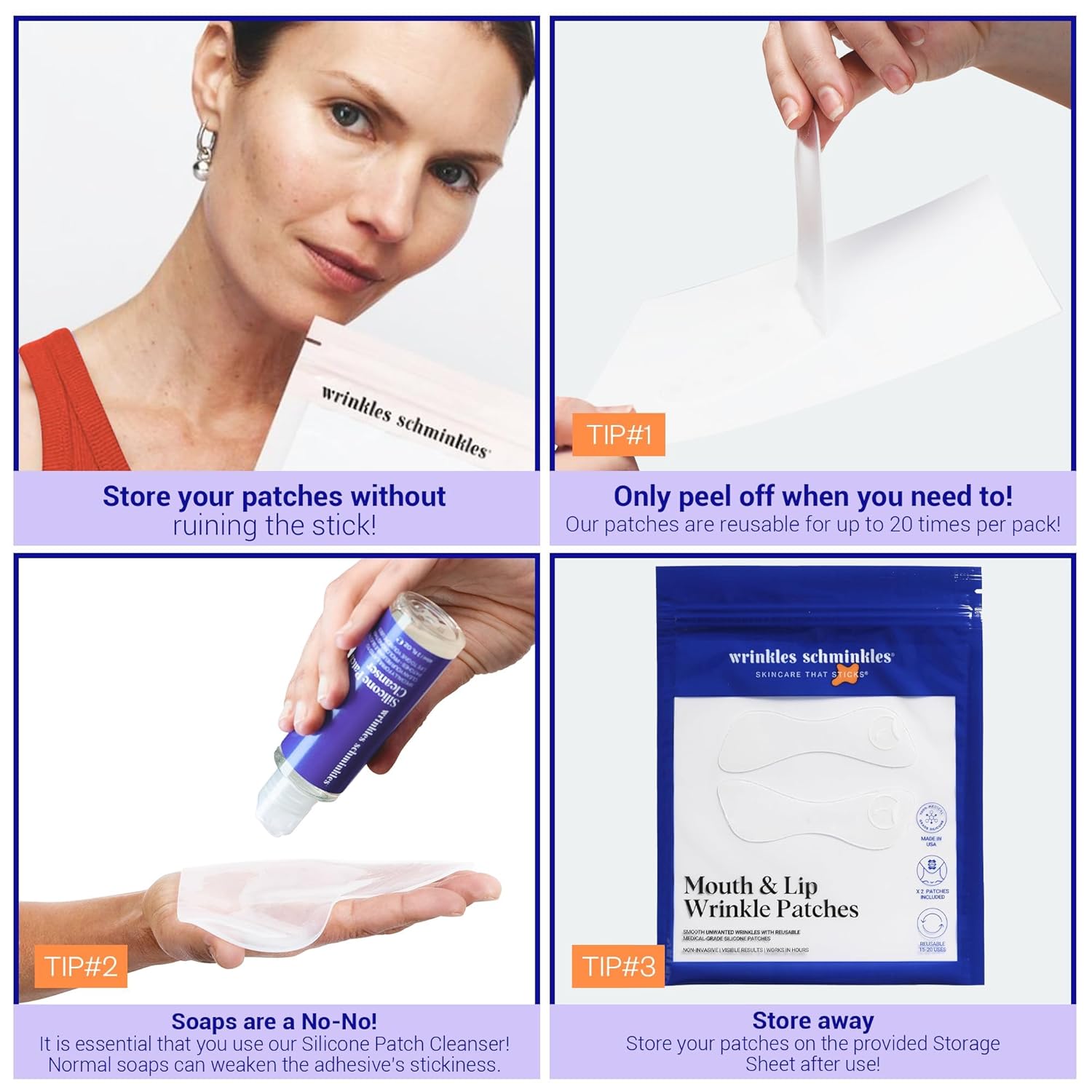- REAL WRINKLES, UNREAL RESULTS: Ideal for overnight use when your skin clicks into repair mode or for 1-2 hours day for a quick boost, our skin-safe, reusable Mouth Wrinkle Patches create an occlusive layer, pulling the skin taut to prevent creasing. Simultaneously boosting hydration, collagen production, and overall skin resilience.