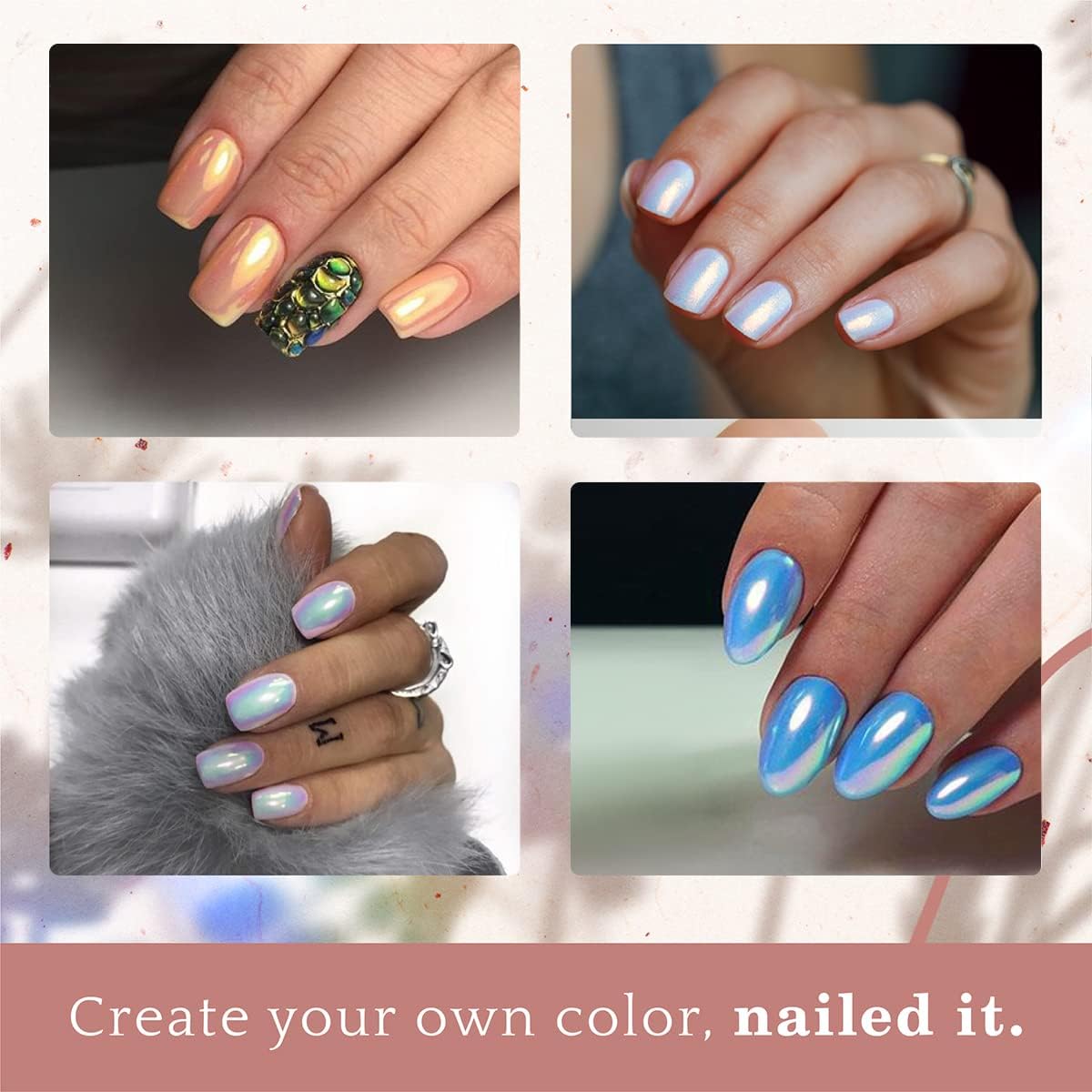 - 【Aurora/Mermaid Chrome Nail Powder】: Exactly what you are looking for, It comes in a rich variety of colors, all of them dazzling and vibrant, make your nails more shiny and unique, and create mermaid/neon/aurora nail effects, Iridescent nail powder is suitable of nail decorations for nail art