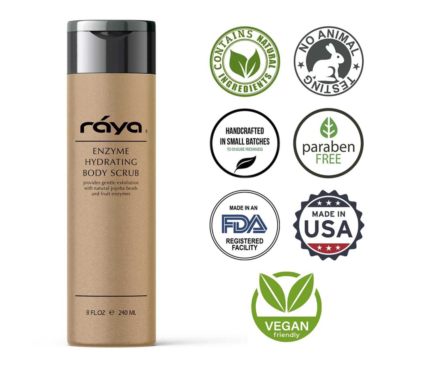RAYA Enzyme Hydrating Body Scrub 8 oz Pineapple Scent (S-104) | Gentle and Exfoliating Body Scrub | Made with Seaweed, Jojoba Beads, and Fruit Enzymes
