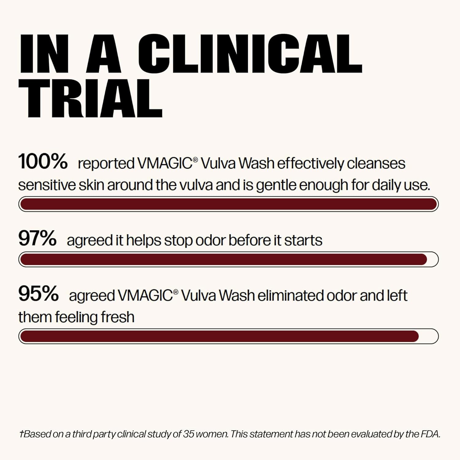 - Stop Odor Before It Starts: A study showed that 97% agreed it helps stop odor before it starts while 95% agreed it eliminated odor and left them feeling fresh