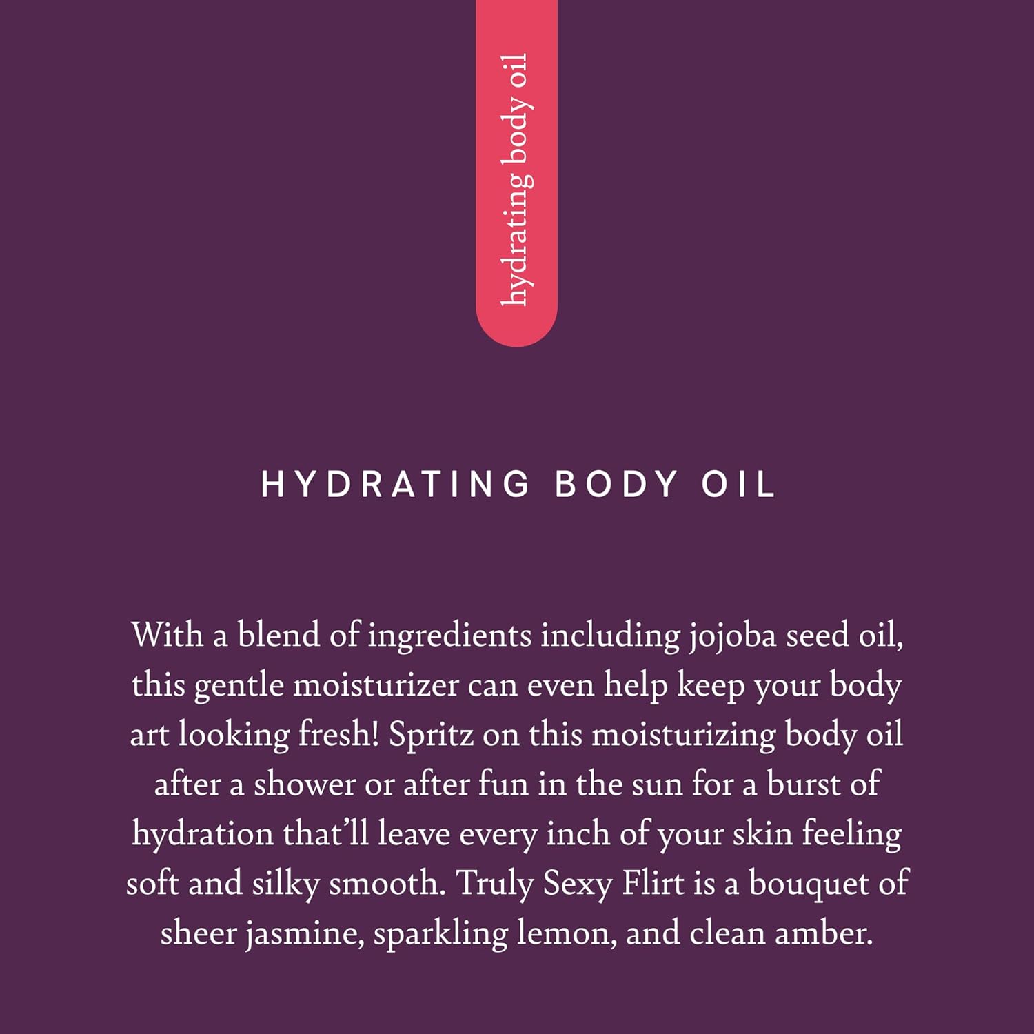 - FRESH ZESTY SCENT: With our Truly Sexy Flirt scent, your body will smell like a fertile fruit-bearing oasis, using notes of sheer jasmine and sparkling citrus for luscious skin that radiates a zesty herbaceous aroma that'll charm any nearby noses.