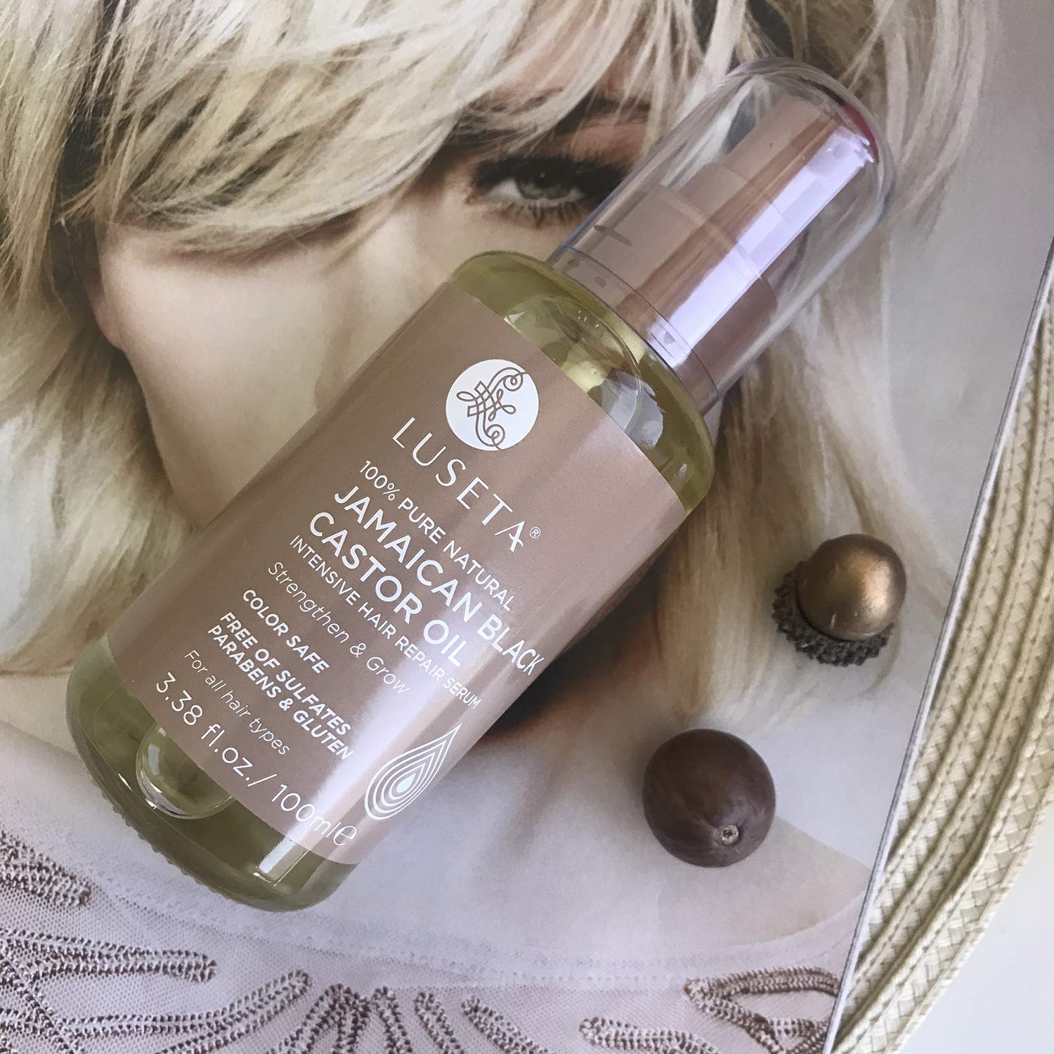 Luseta 100% Pure Natural Jamaican Black Castor Oil Hair Oil, Moisturizing & Healing, For Hair Growth 3.38oz