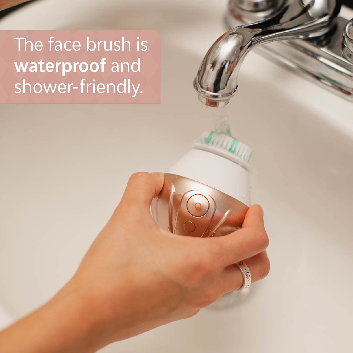TAO Clean Ona Diamond Orbital Facial Brush and Cleansing Station, Electric Face Cleansing Brush with Ergonomic Handle, Dual Speed Settings, Rose Gold
