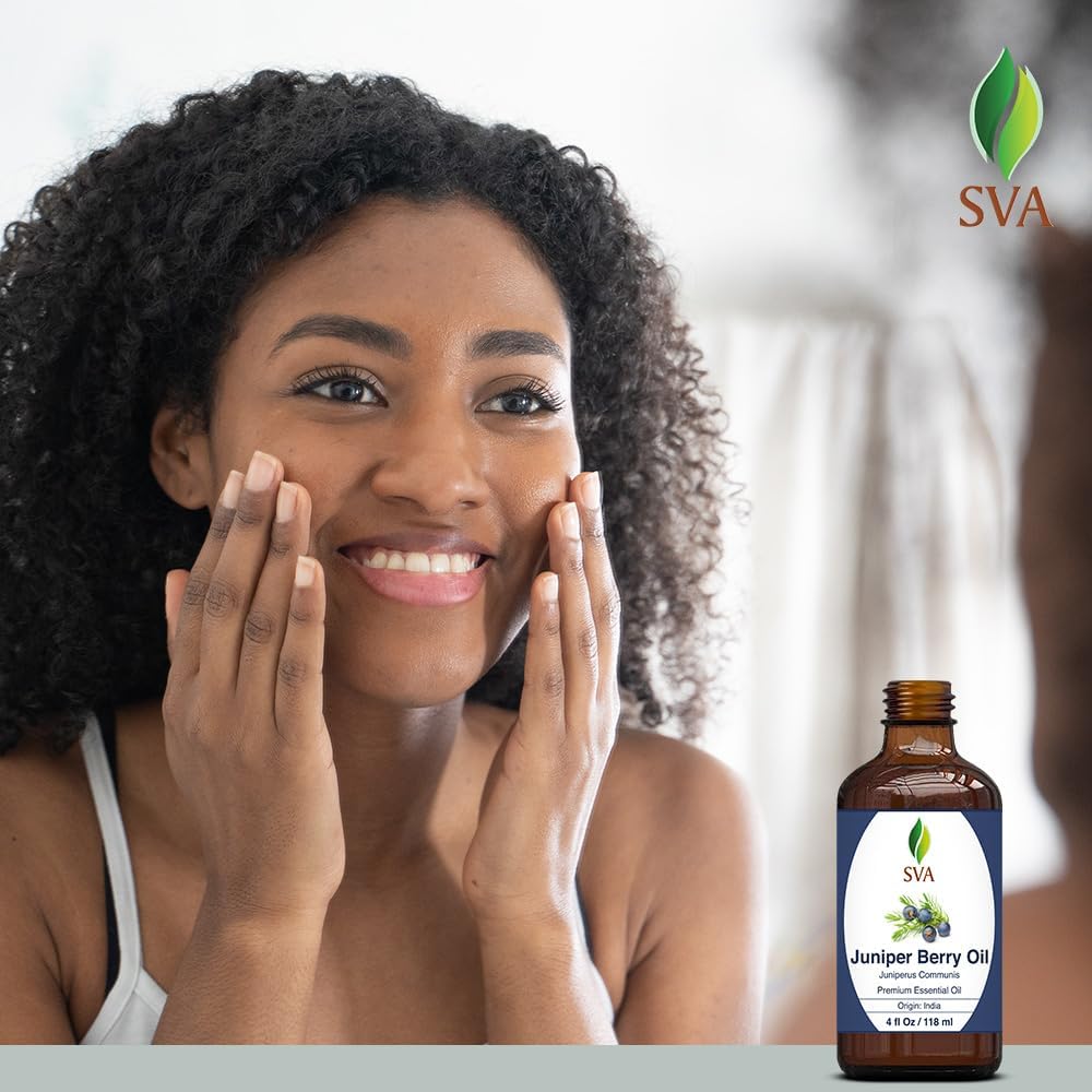 - Premium Quality Juniper Berry Essential Oil: SVA Juniper Berry Oil essential oil 4oz is obtained by steam distillation of Juniperus Communis herb. Our Juniper Berry oil is free of preservatives and comes with a dropper for easy application. It is not tested on Animals. We care for you
