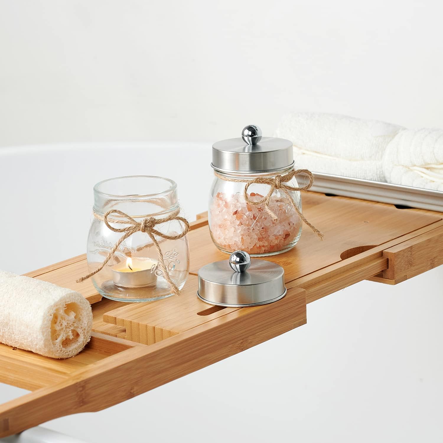 - ✔️Versatile Gift Idea: Ideal for a variety of occasions, this bathroom organizer and storage set is perfect for weddings, housewarming events, birthdays, Mother's Day, Thanksgiving Day, Christmas, New Year, bridal showers, and baby showers. It also makes an excellent gift for mothers, friends, sisters, co-workers, or anyone else, suitable for use throughout the year. The package includes: 2 pack glass mason jars with stainless steal lids. 2 Decorative Twines. 2 Cute Label Stickers.