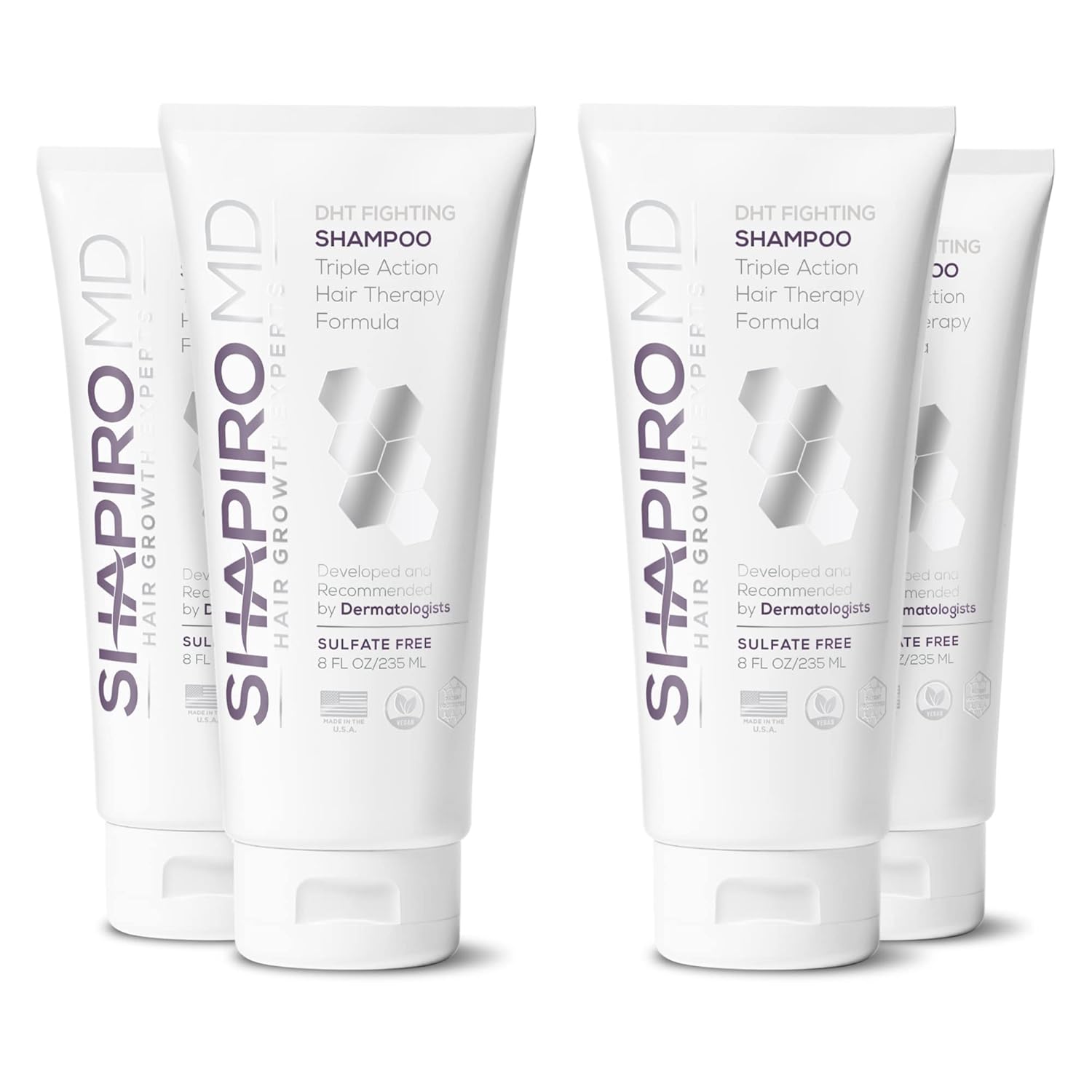 Shapiro MD Hair Growth Experts Hair Loss Shampoo | DHT Fighting Vegan Formula for Thinning Hair Developed by Dermatologists | Experience Healthier, Fuller and Thicker Looking Hair | 4 Month Supply