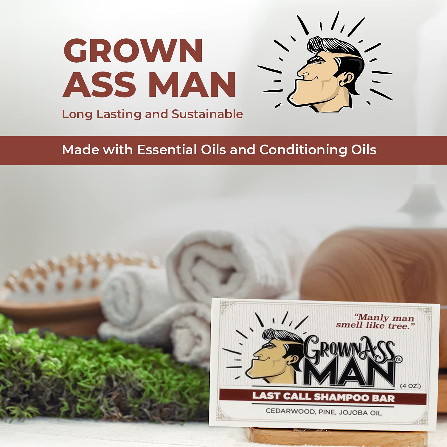 - LONG LASTING & SUSTAINABLE. Meant to last as long as 2 or 3 bottles of liquid shampoo depending on how well you take care of your bar. Made from naturally occurring ingredients around the world, Grown Ass Man Shampoo Bars were created to help the planet by providing you a cleanser with a low carbon footprint. We use only certified organic base oils in our shampoo and want you to feel safe knowing that we will never de-prioritize quality, sustainability, or health.