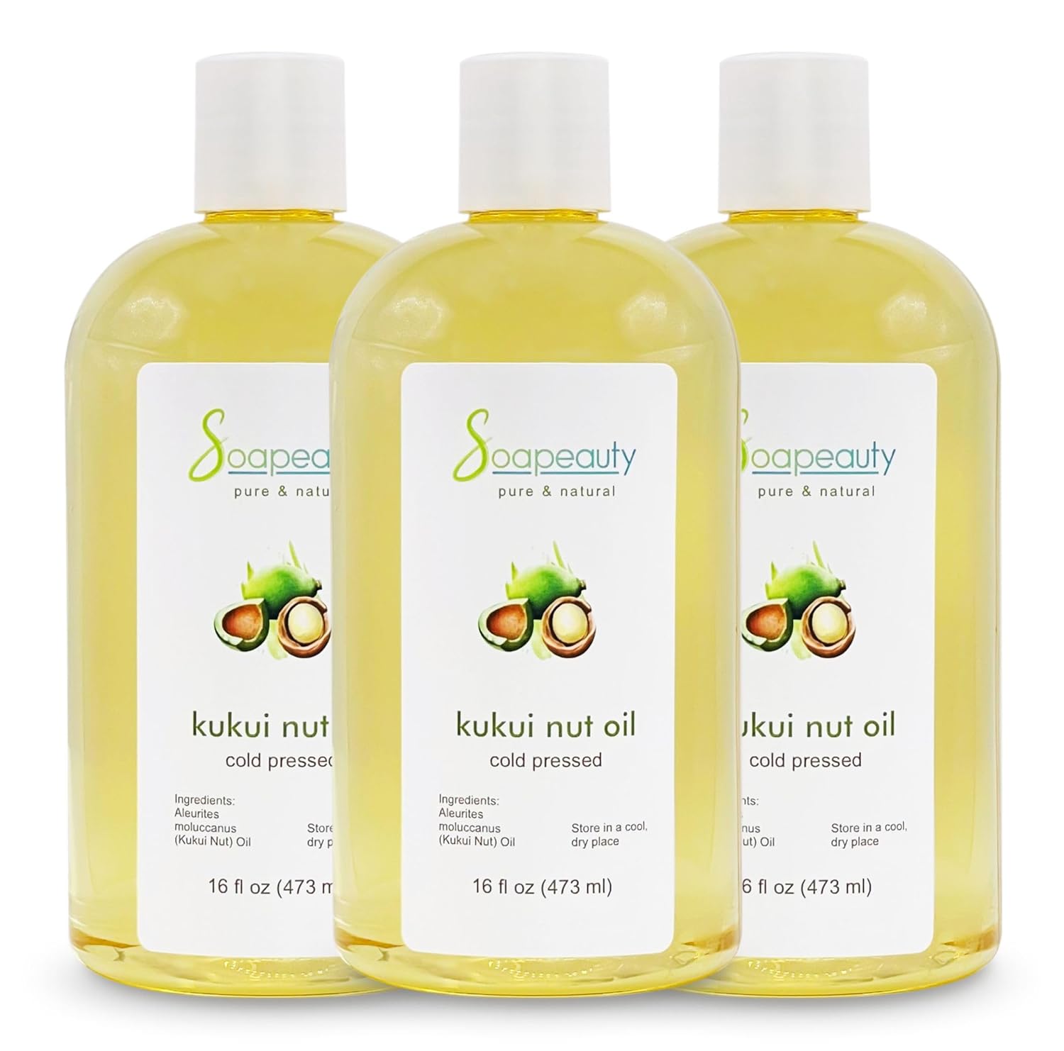 Soapeauty Kukui Nut Oil | 100% Pure & Natural | Cold Pressed | Moisturizing Oil for Skin, Hair, and Soap Making | 48 fl oz (3 * 16 fl oz)