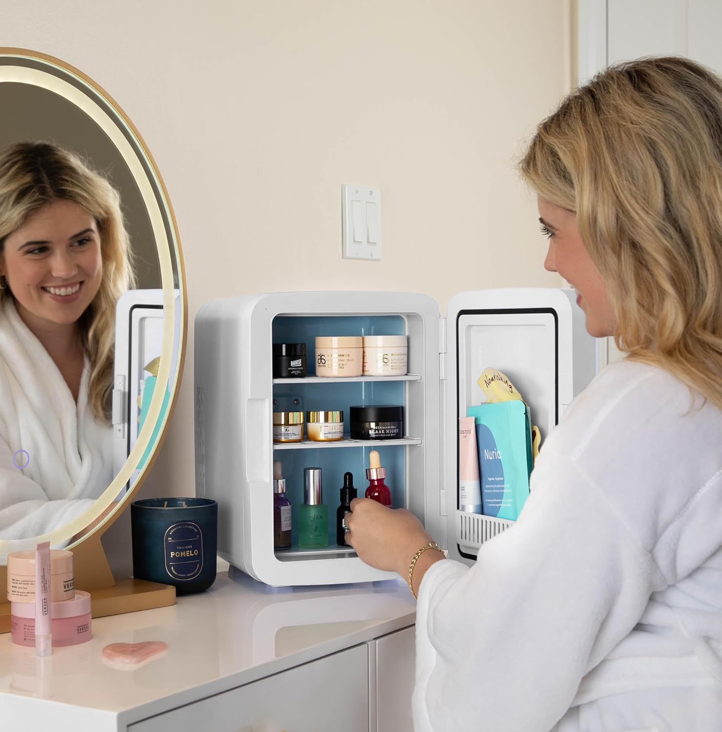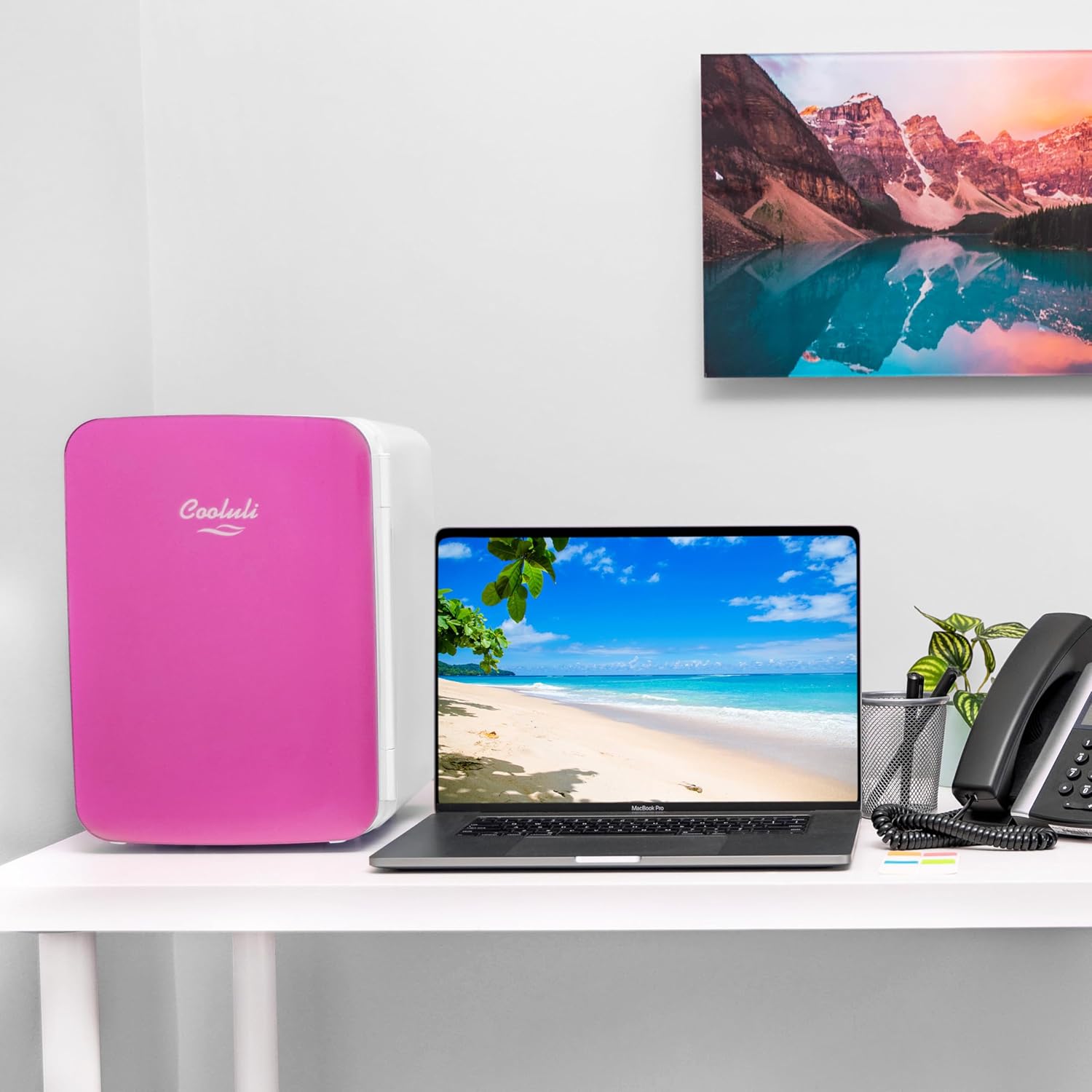 Cooluli 10L Mini Fridge for Bedroom, Car, Office Desk & Dorm - Portable Thermoelectric Cooler & Warmer for Food, Drinks, Skincare - Compact Refrigerator with Glass Front, Pink
