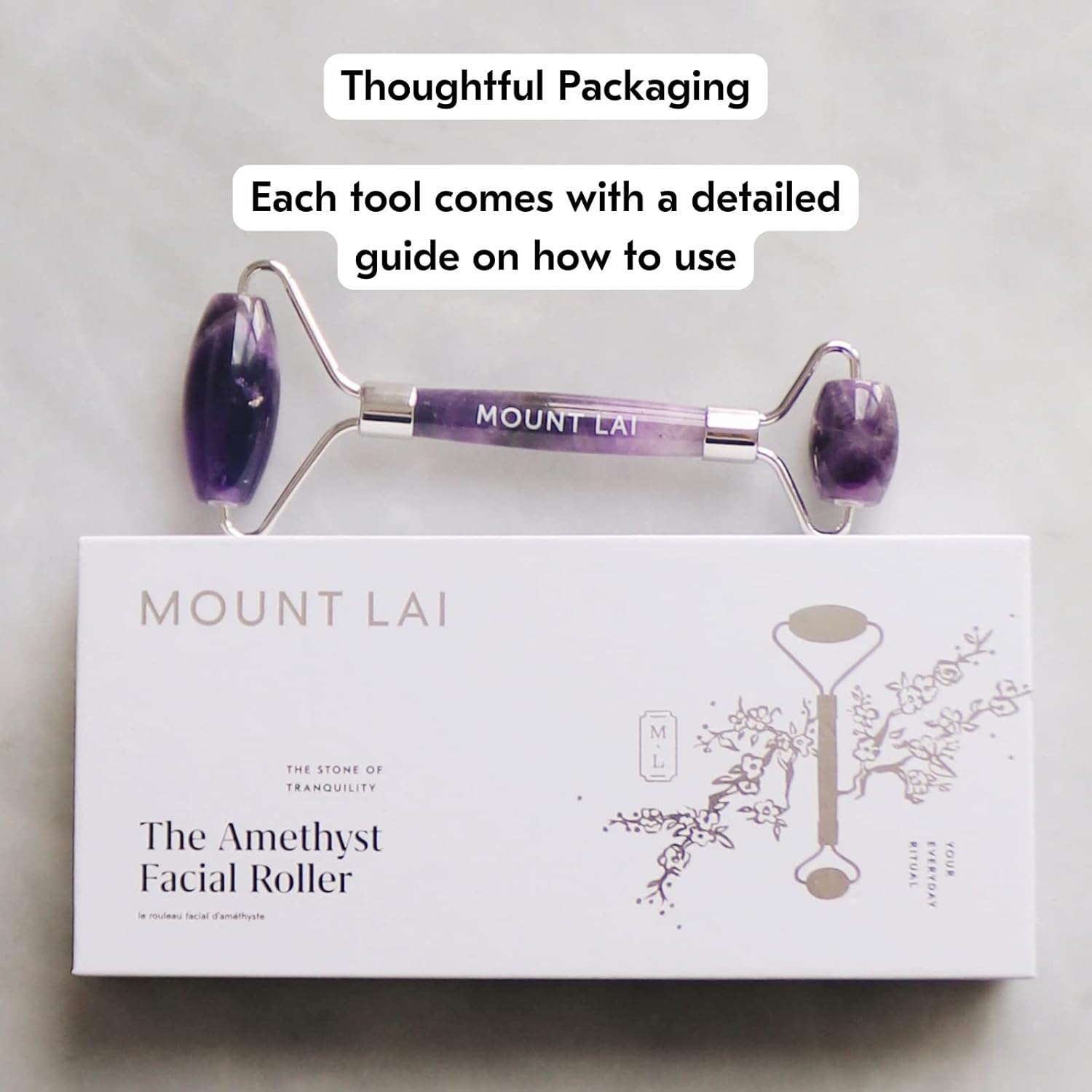 Mount Lai De-Puffing Amethyst Face Roller – The Stone of Tranquility, Facial Massager to Soothe, Calm & De-Puff Sensitive Skin, A Self-Care Ritual for Radiance