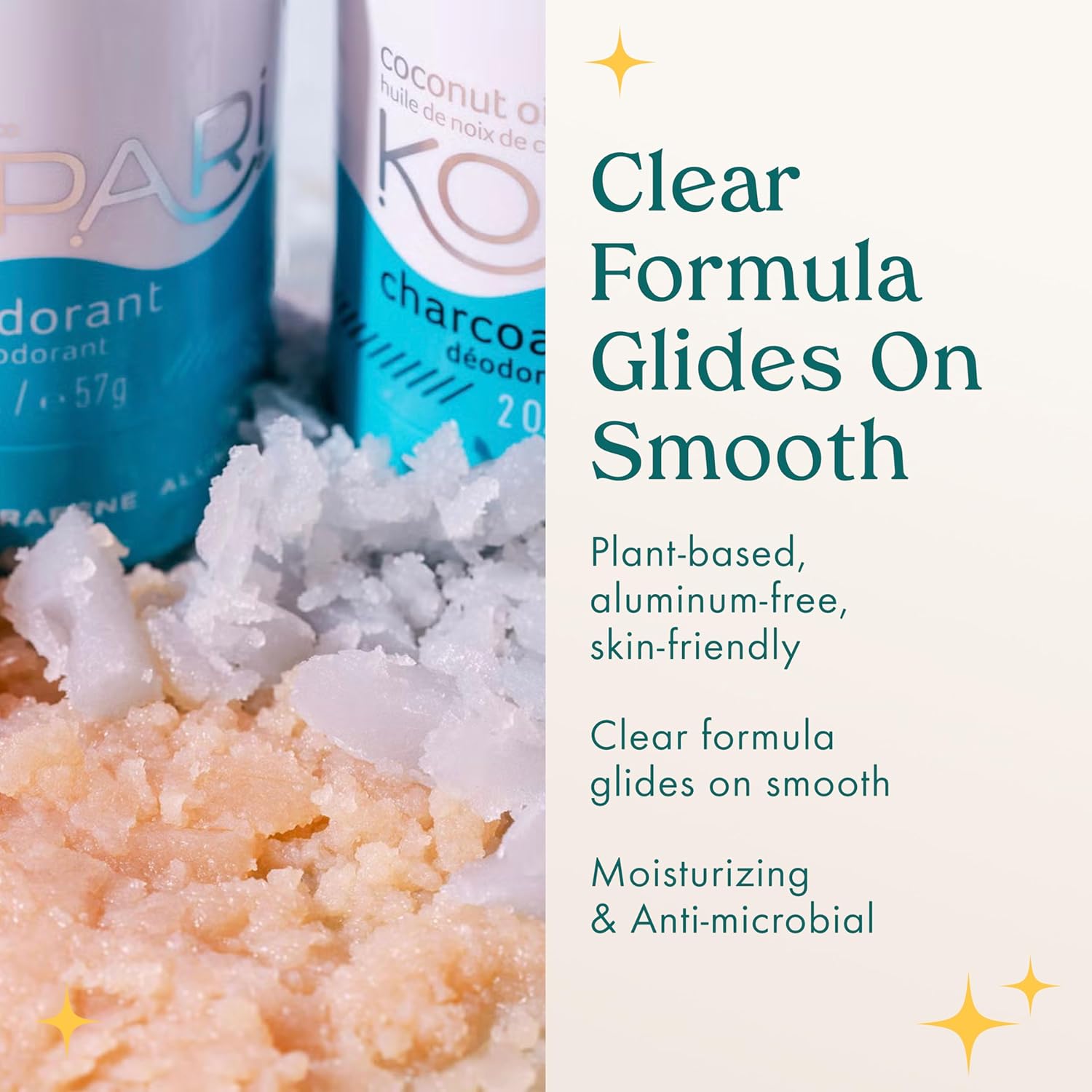 Kopari Aluminum Free Coconut Deodorant, Non Toxic & Clean Plant-Based, No Aluminum, Parabens or Baking Soda, Long Lasting Protection, Charcoal 2 Pack