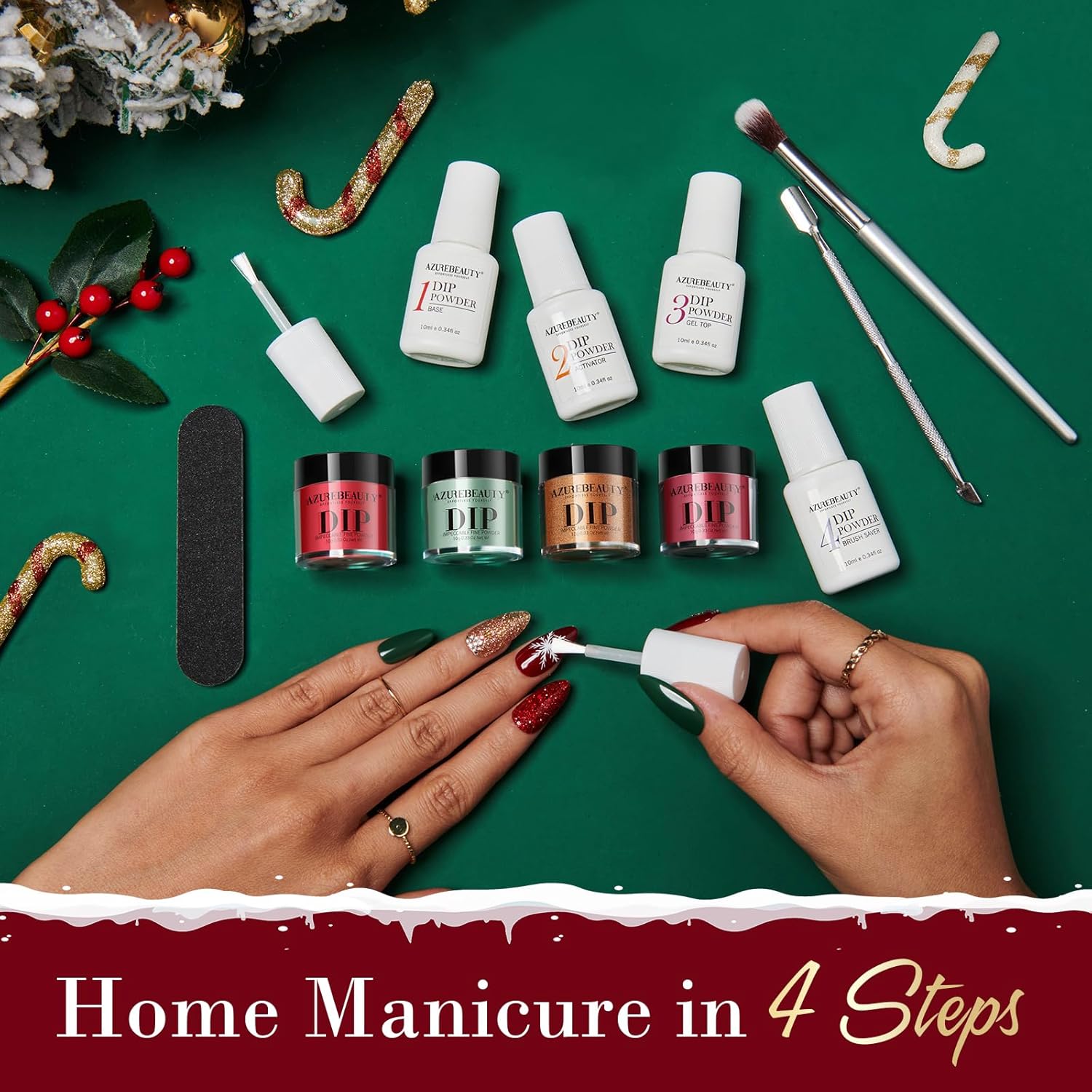 - Nail-Friendly: AZUREBEAUTY dip powder is made of high-quality raw materials, to give nails high endurance and long-lasting strength. Safe & low-odor, it would not damage your nail bed and is available for air-dry. (Please note: Read the instructions carefully before you use this dipping powder starter nail kit.)