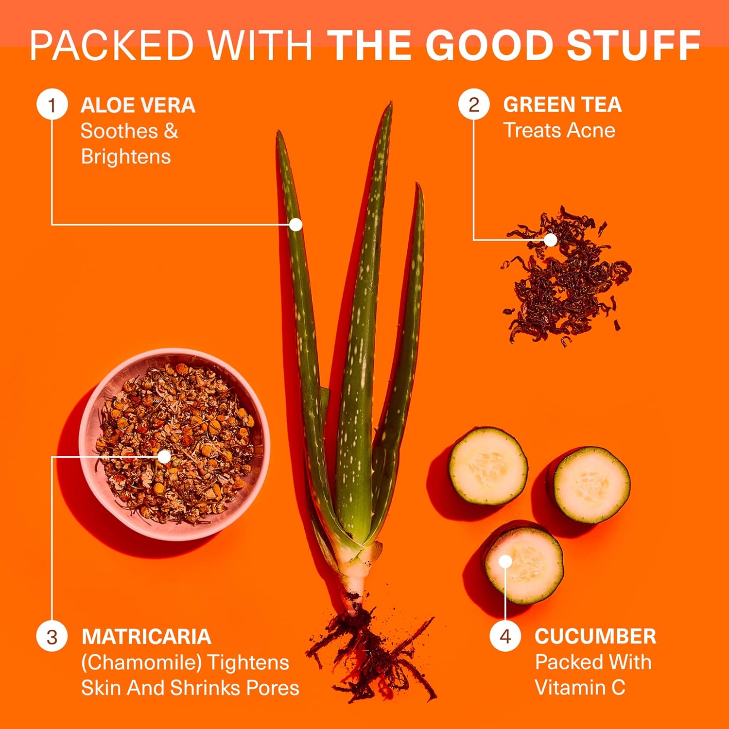 - NOURISH YOUR SKIN WITH OUR CLEAN FORMULA. Our natural facial cleanser with vitamin C is enriched with organic cucumber, green tea, aloe vera, and matricaria, to naturally soothe all natural sensitive skin.
