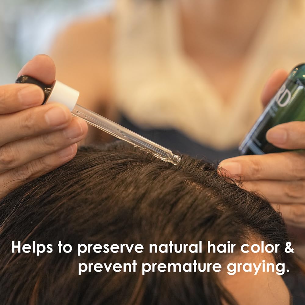 - 【Promotes Vibrant, Natural Color】Our essence uses biomimetic peptides and essential nutrients to stimulate melanin production in hair follicles, helping to preserve your natural hair color and prevent premature graying.