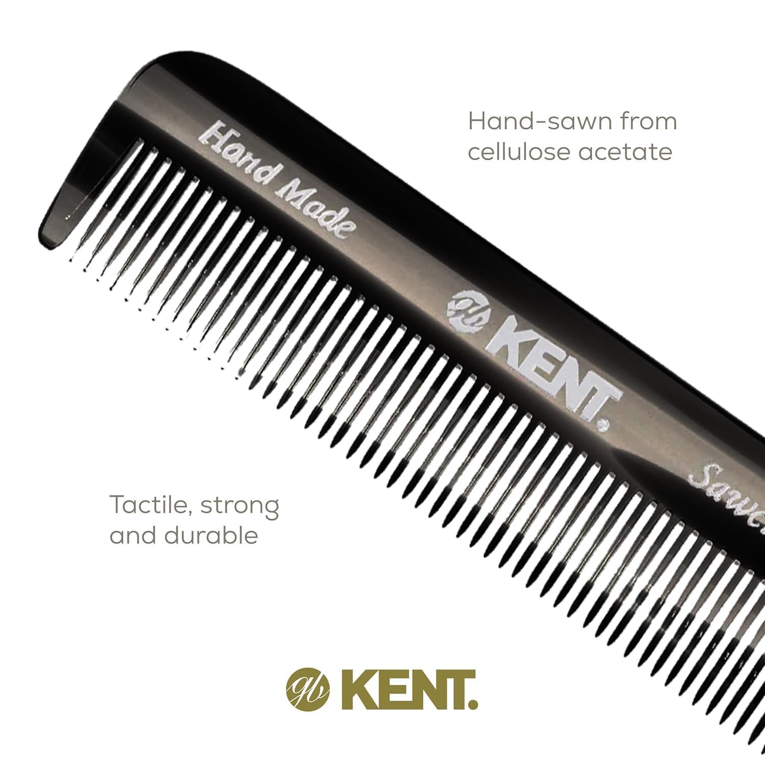 Kent FOT Black Graphite Fine Tooth Comb for Men - Handmade Pocket Comb for Travel, Styling, Fine or Thinning Hair, Mustache and Beard Care Handpolished Saw-Cut Made in England