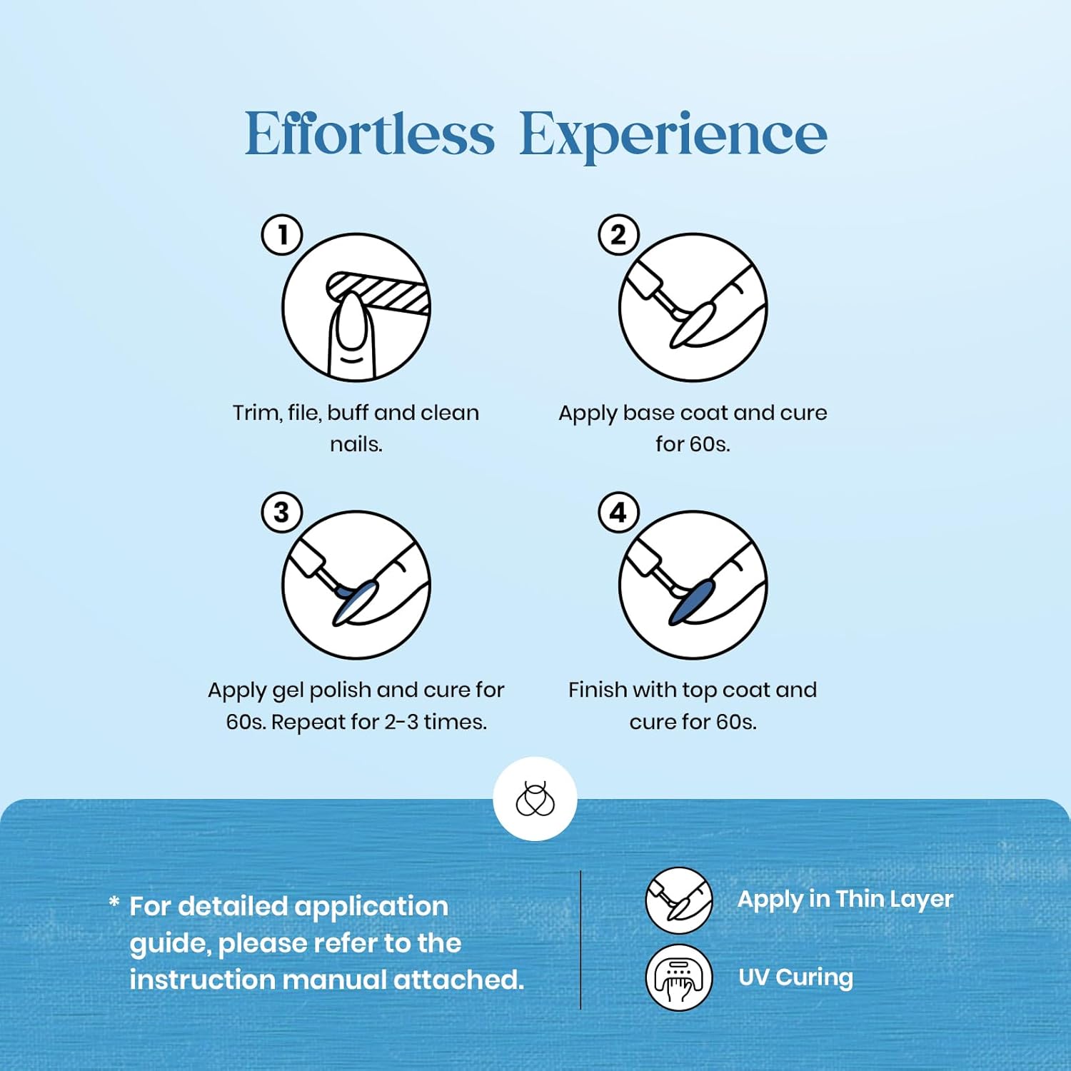 - Note Tips: To prolong the service life, use adhesive tape to remove excess gel polish from the nail stamp instead of washing.For each nail (short nails), apply 2 layers. You can get approximately 8 sets of solid color manicures from each 5ml bottle.