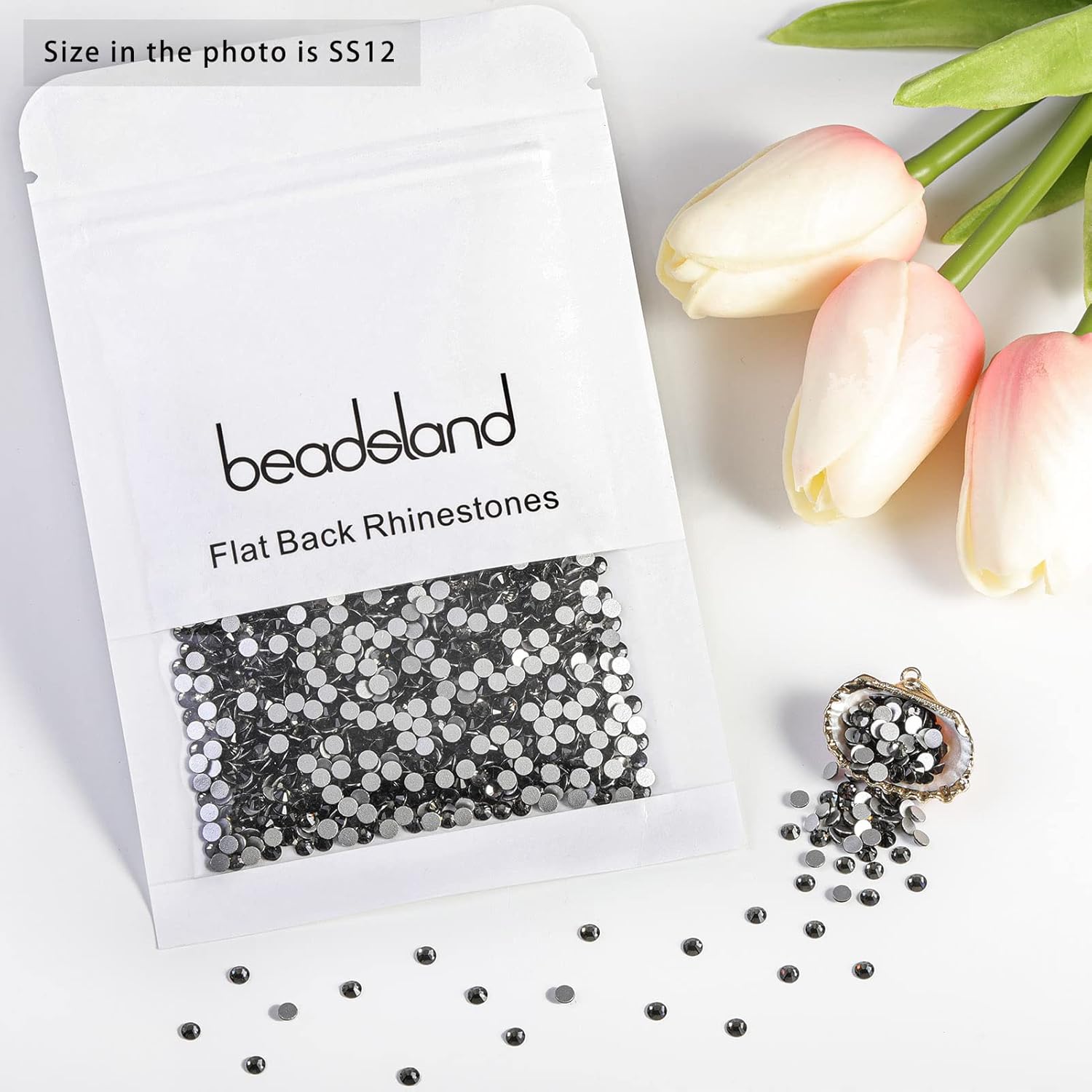 Beadsland 1440pcs Flat Back Crystal Rhinestones Round Gems for Nail Art and Craft Glue Fix,Black Diamond,SS12,3.0-3.2mm