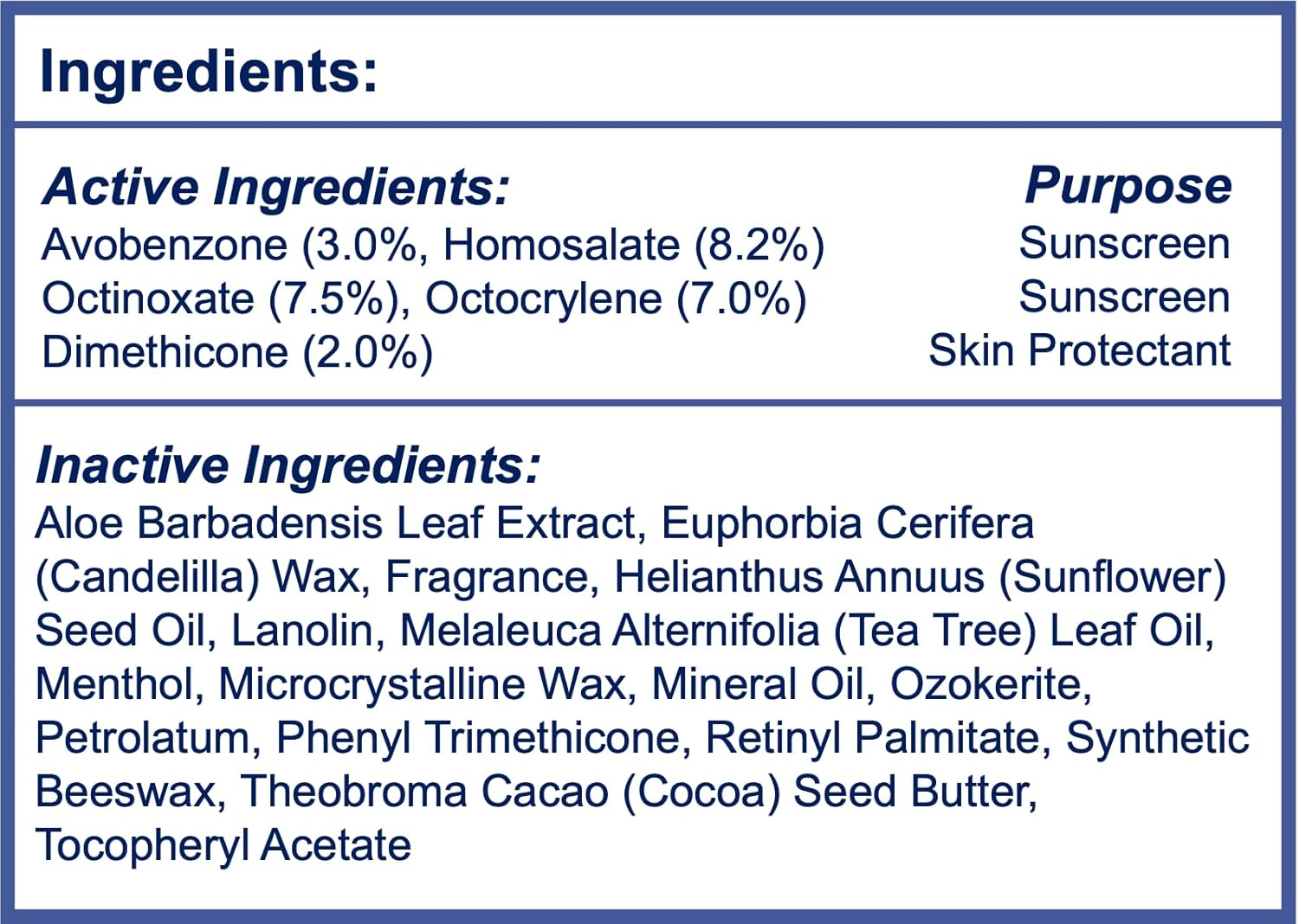- MOISTURIZING & MEDICATED LIP BALM FOR DRY AND CHAPPED LIPS: Our Lip Balm SPF 30 is formulated with ingredients like Cocoa Butter, Aloe, Sunflower Seed Oil, Vitamin E and Tea Tree Oil to soothe, repair and replenish your dry, cracked and chapped lips.