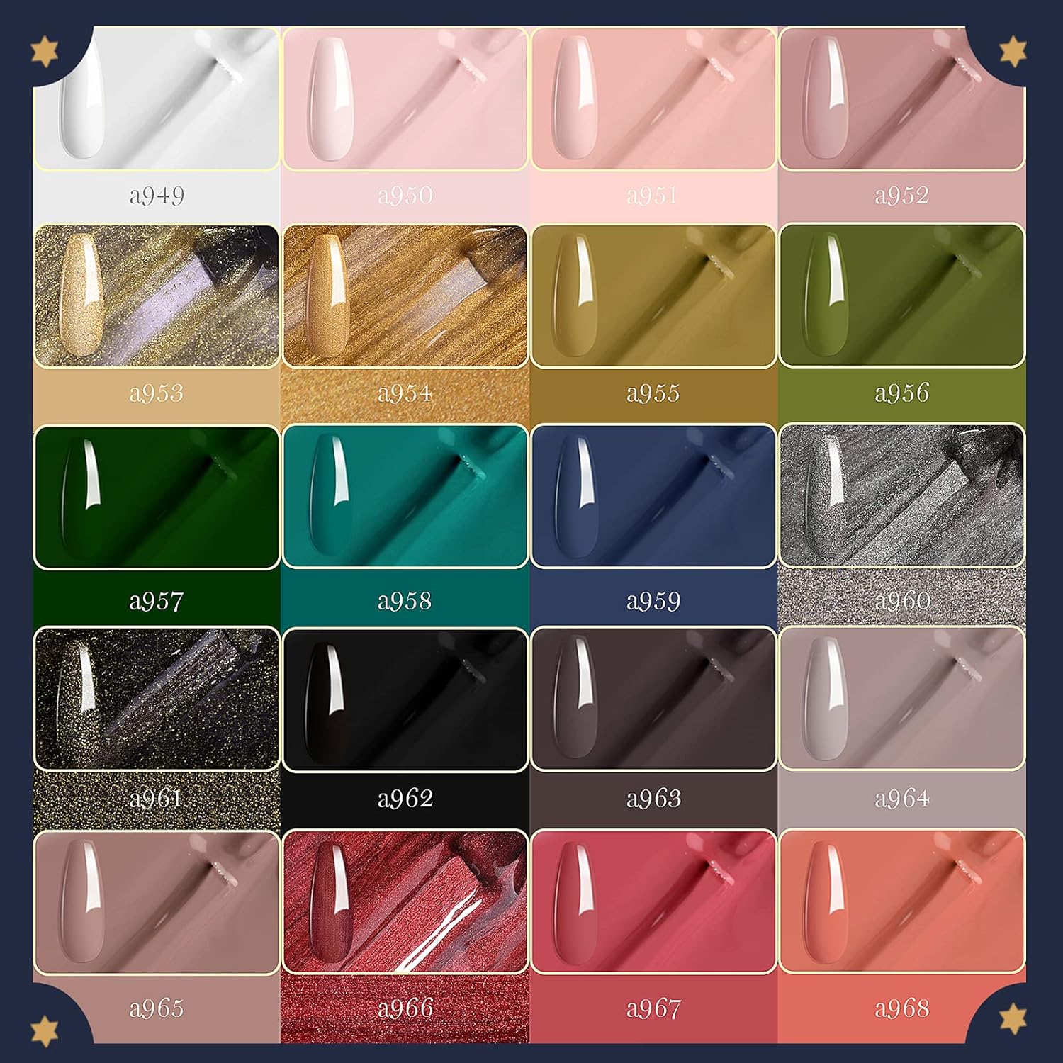 - Lucky Tarot Color Gel: These Beetles gorgeous colors can lead you to great authenticity and emotional freedom in your life. They can bring you Luck, Beauty, and Happiness. Color Numbers are: a949-a950-a951-a952-a953-a954-a955-a956-a957-a958-a959-a960-a961-a962-a963-a964-a965-a966-a967-a968. All Season Gel Nail Polish Set.