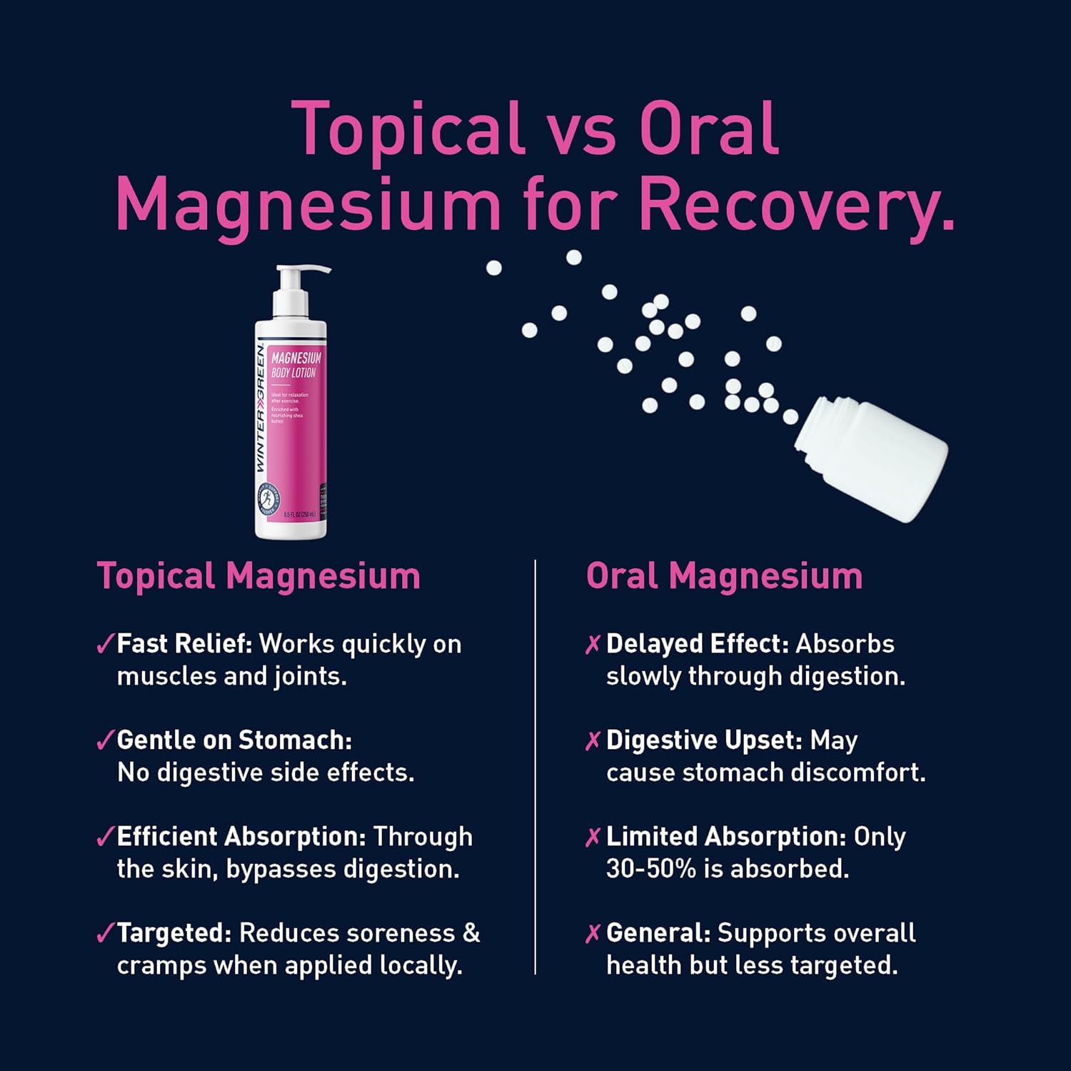 Wintergreen Magnesium Body Lotion, 8.5oz – Arnica, Menthol for Muscle Recovery, Soothing and Hydrating Formula for Sore Muscles, Fast-Absorbing Relief