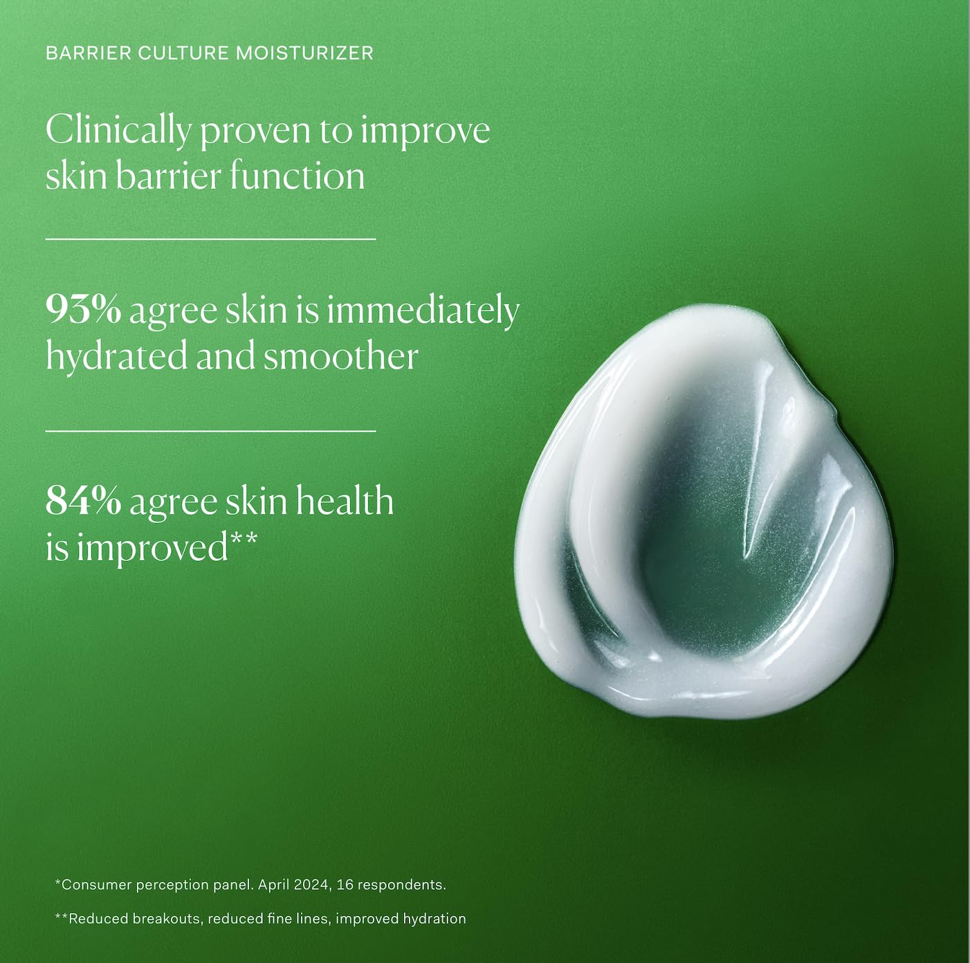 - BARRIER CULTURE MOISTURIZER is a lightweight pre-, pro- and postbiotic formula with ceramides, peptides, niacinamide and squalane that’s engineered to protect the skin barrier, replenish the microbiome, lock in moisture and smooth skin texture.