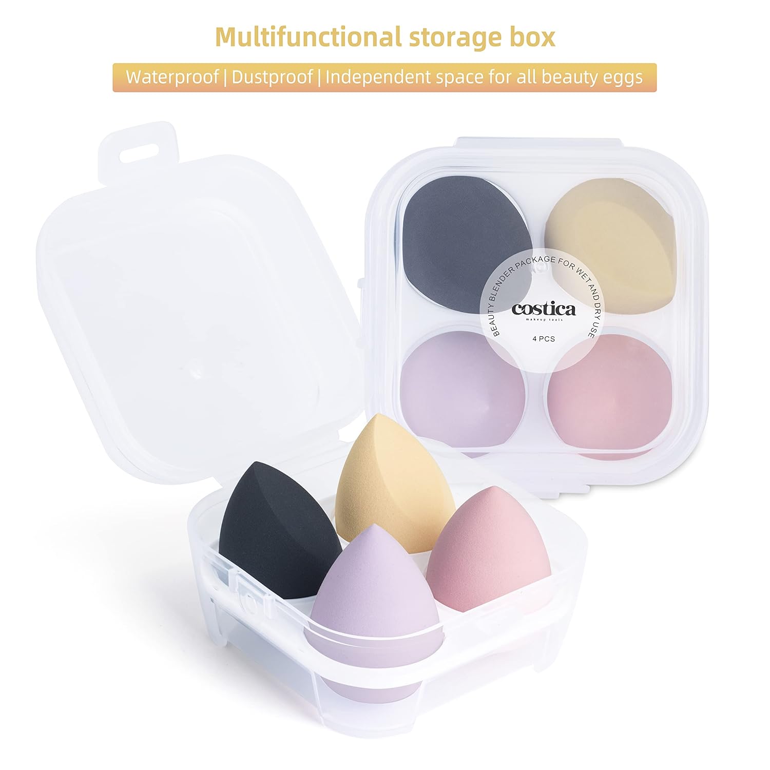 COSTICA Makeup Sponge, 4 Pcs Beauty Blender for Foundation Blending Sponge, Multi-colored Makeup Blender with Storage Box, Flawless for Liquid Cream and Powder