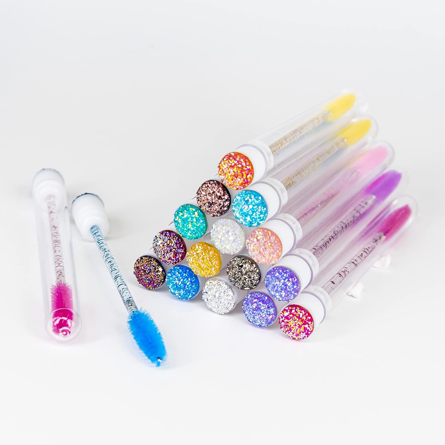 i-Laesh 20 Pcs Lash Brush Eyelash Brushes for Eyelash Extensions Spoolies Cleaning Mascara Wands Tube Diamond Disposable Makeup Tool Applicator Set Sanitary Extension Supplies (Diamond-mix)
