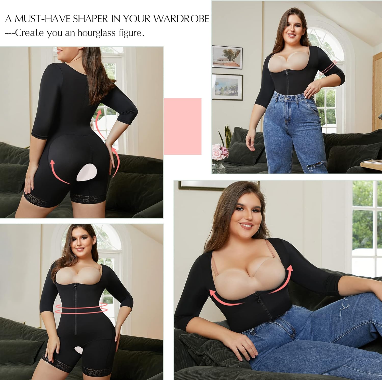 • UPPER ARM SHAPER AND OPENED-BUST BODYSUIT: Special U-Shape design, the open bust shapewear bodysuit for women will prevent breast sagging, makes your chest more erect and attractive. Different from other body slimming bodysuit, our shapewear for women tummy control plus with upper arm shaper sleeves, say goodbye to your slack fat in the arms.