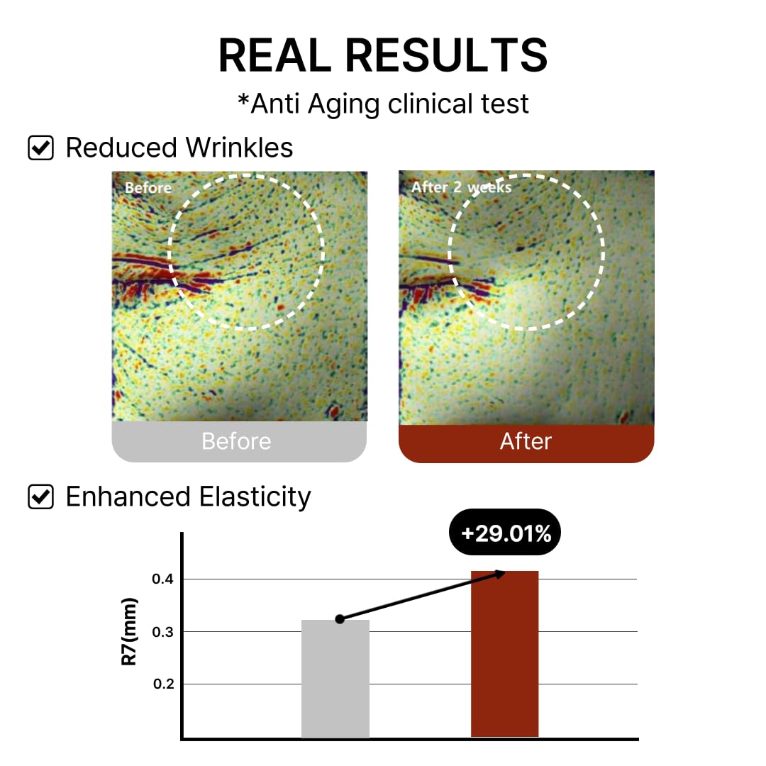 - ANTI-AGING SERUM Antioxidants such as niacinacmide, propolis extract, vitamin E, ubiquinone, resveratrol, which makes skin ultimately healthy rather than giving a temporary good feeling through clear complexion, improvement skin's barrier, dimensions of wrinkles, hyperpigmentation and bumps.
