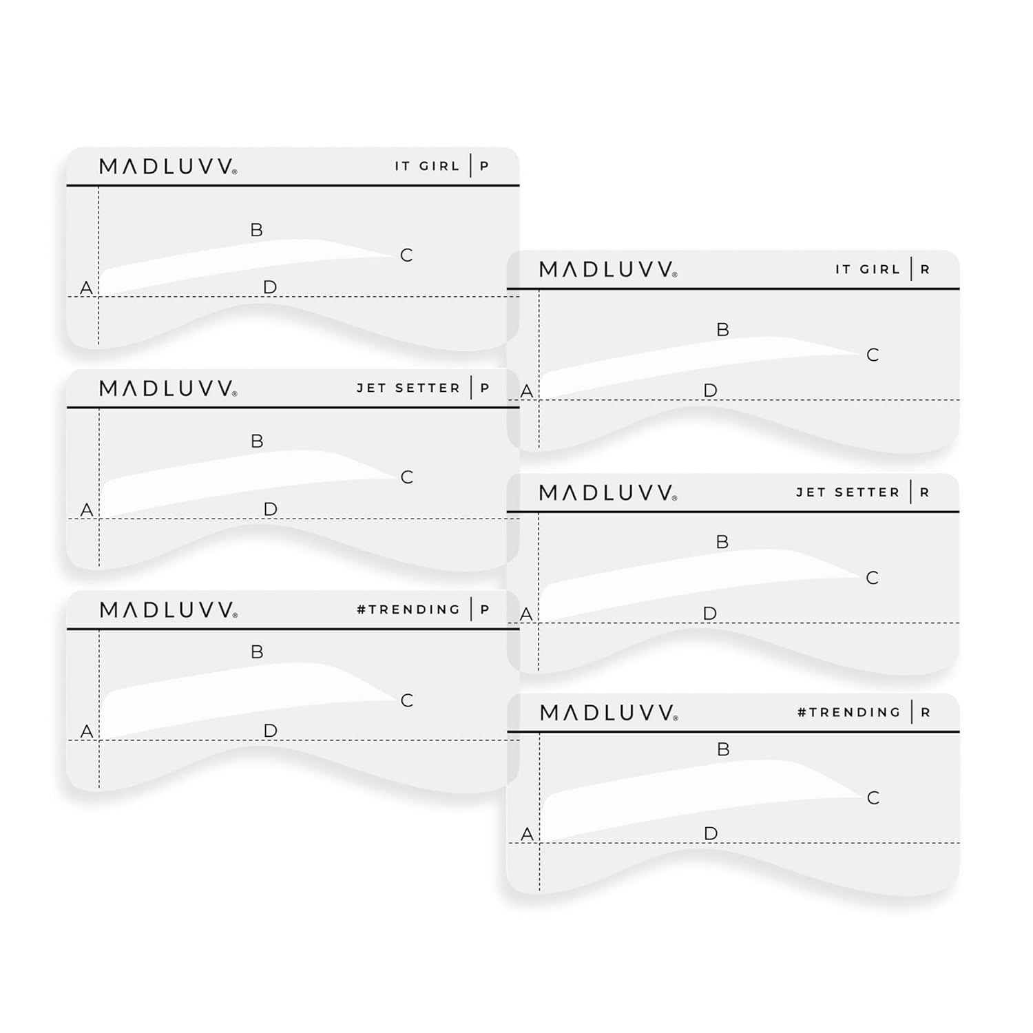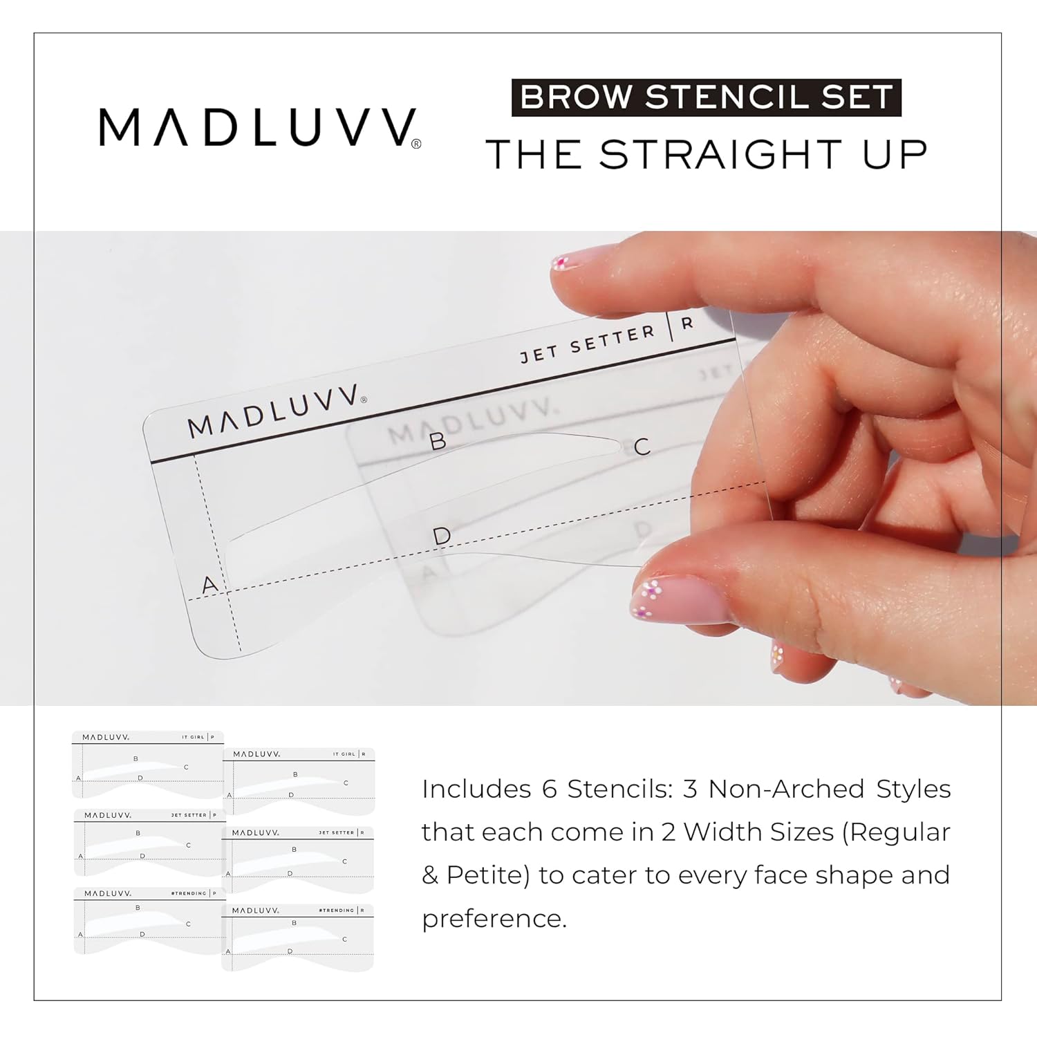 MADLUVV Eyebrow Shaper Stencils – 6 Reusable Stencils for Microblading, Brow Mapping & Shaping – Petite & Regular Sizes – for PMU & Semi-Permanent Makeup Artists - Straight Up Set