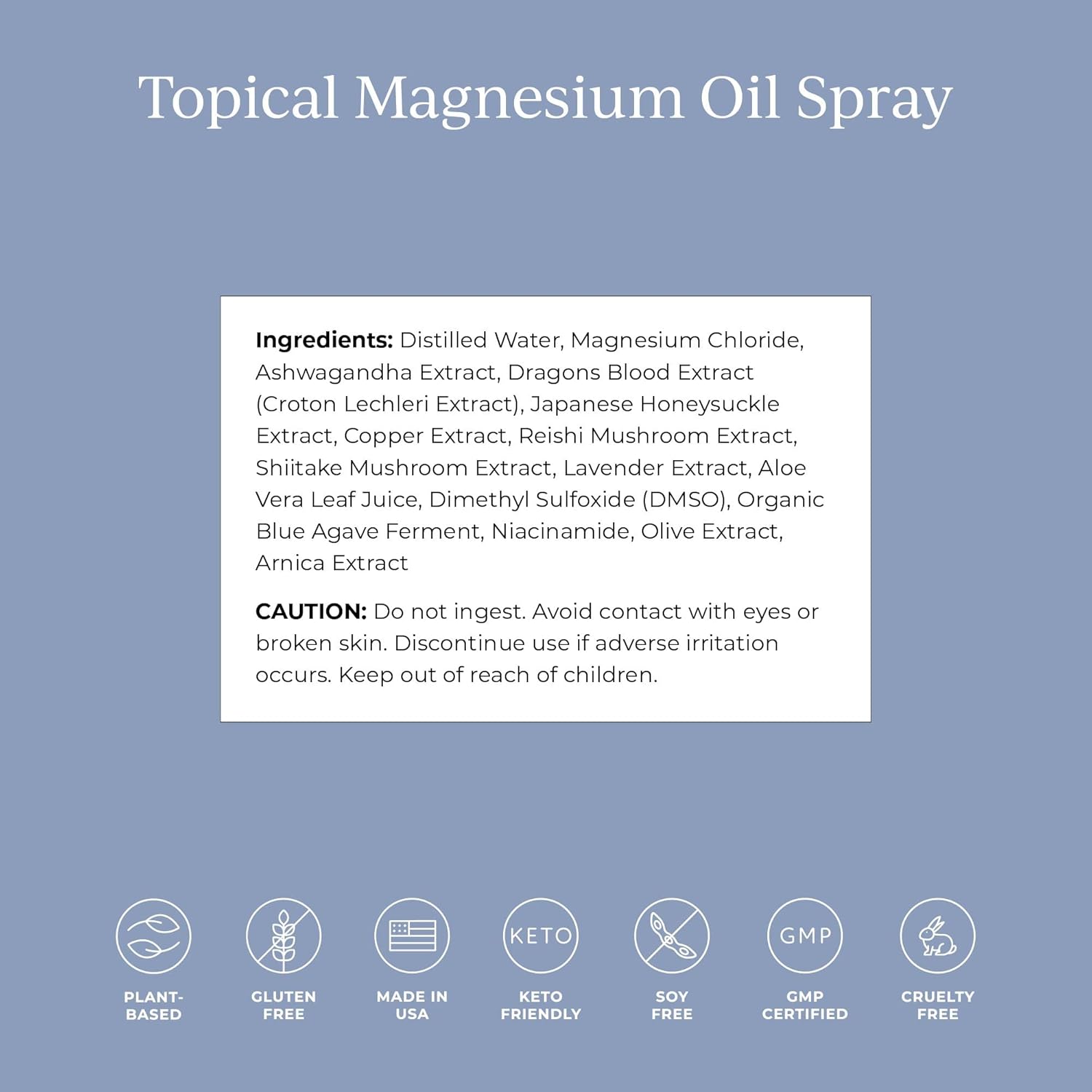 - NATURAL SUPPLEMENT: Cymbiotika strives to create ingredients you can trust. We combine scientific innovation with traditional Eastern medicine to design formulas that synergize with the body. Our magnesium oil spray utilizes the most advanced absorption technology and is vegan, gluten free, GMO-free, and made with ZERO chemicals, animal products, alcohols, additives, and preservatives.