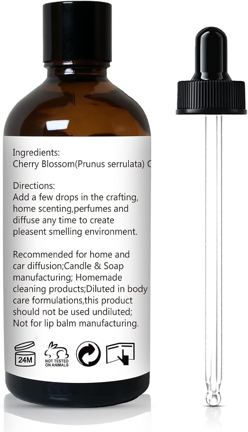 Cherry Blossom Essential Oil, Fragrance Oil for Candle Soap Making, Perfume for Women, Gift for Her - 3.38 Fl Oz 100ml