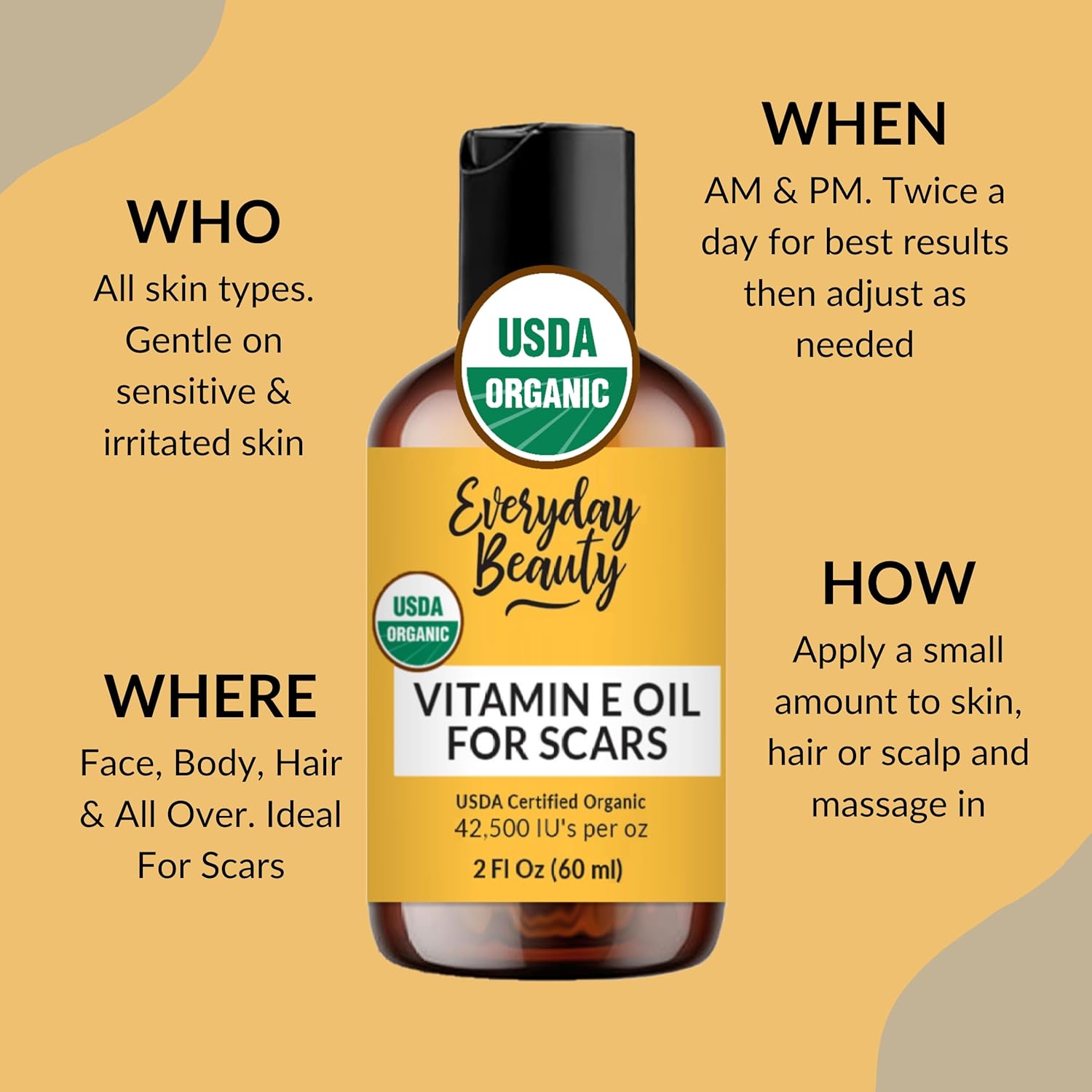 - USDA Certified Organic, Vegan and 100% All Natural Vitamin E Oil For Scars