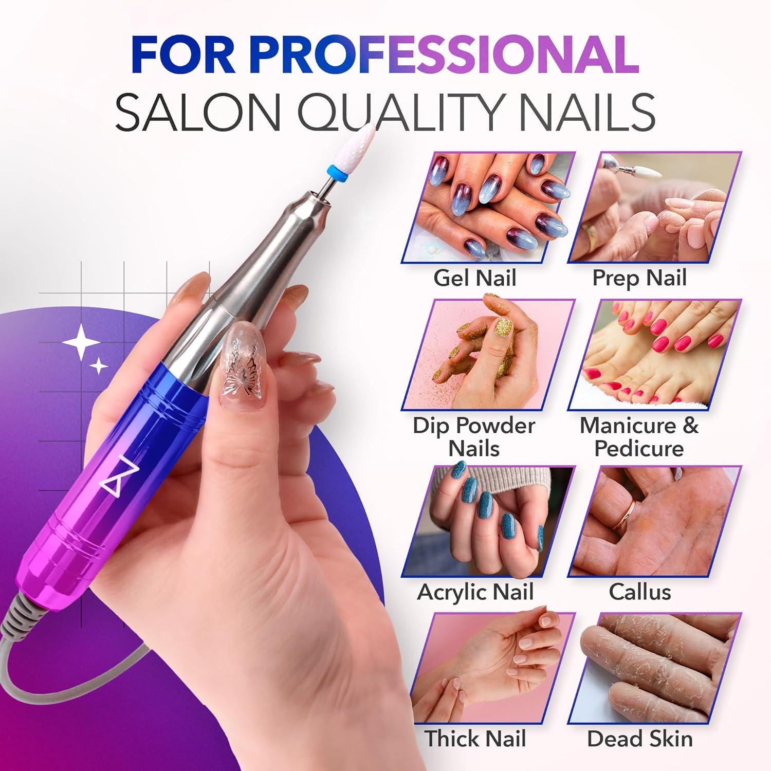 - DESIGNED FOR SALON QUALITY NAILS: The M cordless nail drill is a must-have for professionals and beginners to obtain flawless nails quickly and easily. Master the art of flawless nails with this powerful, adjustable, and user-friendly efile nail drill