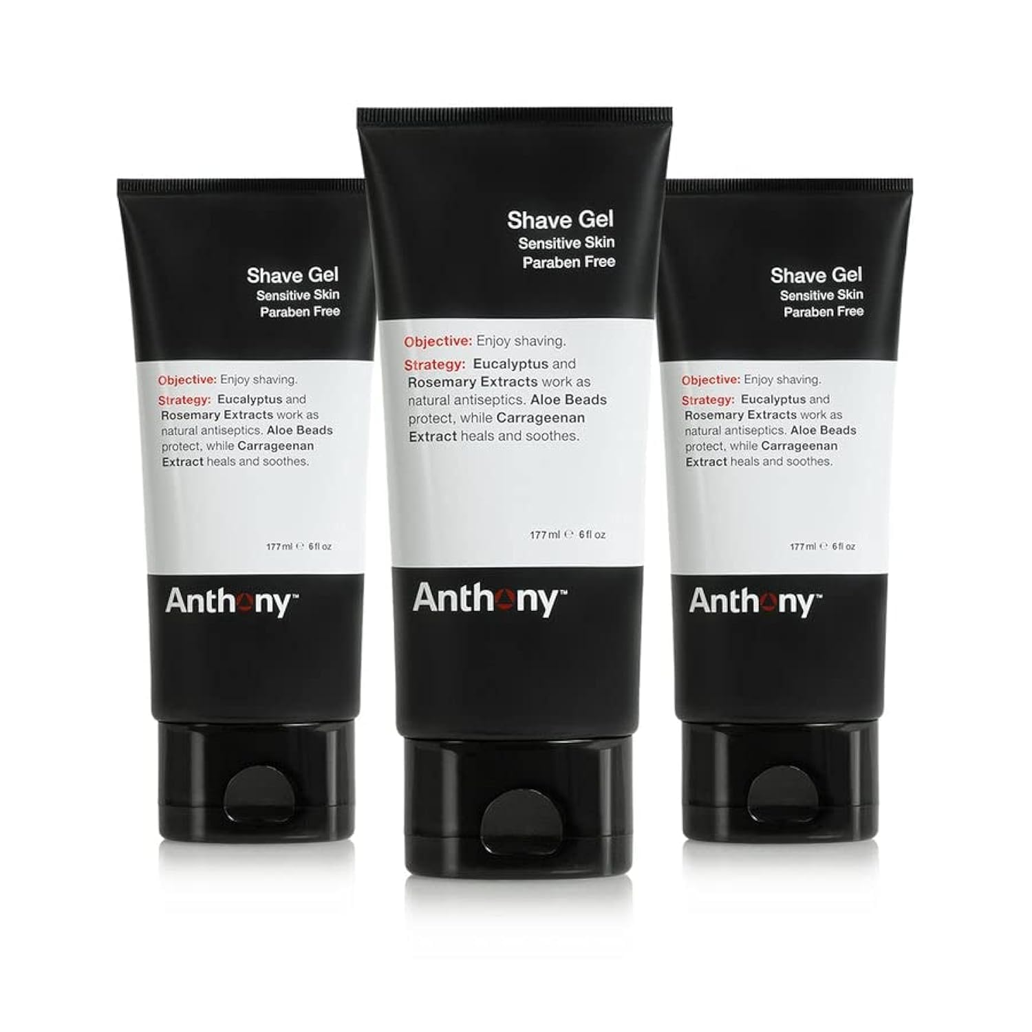 Anthony Shave Gel for Sensitive Skin – Non-Foaming, Soothing Shaving Cream for Men and Women. With Aloe Vera Beads, Eucalyptus, Rosemary and Carrageenan Extract - 6 Fl Oz (3 Pack)