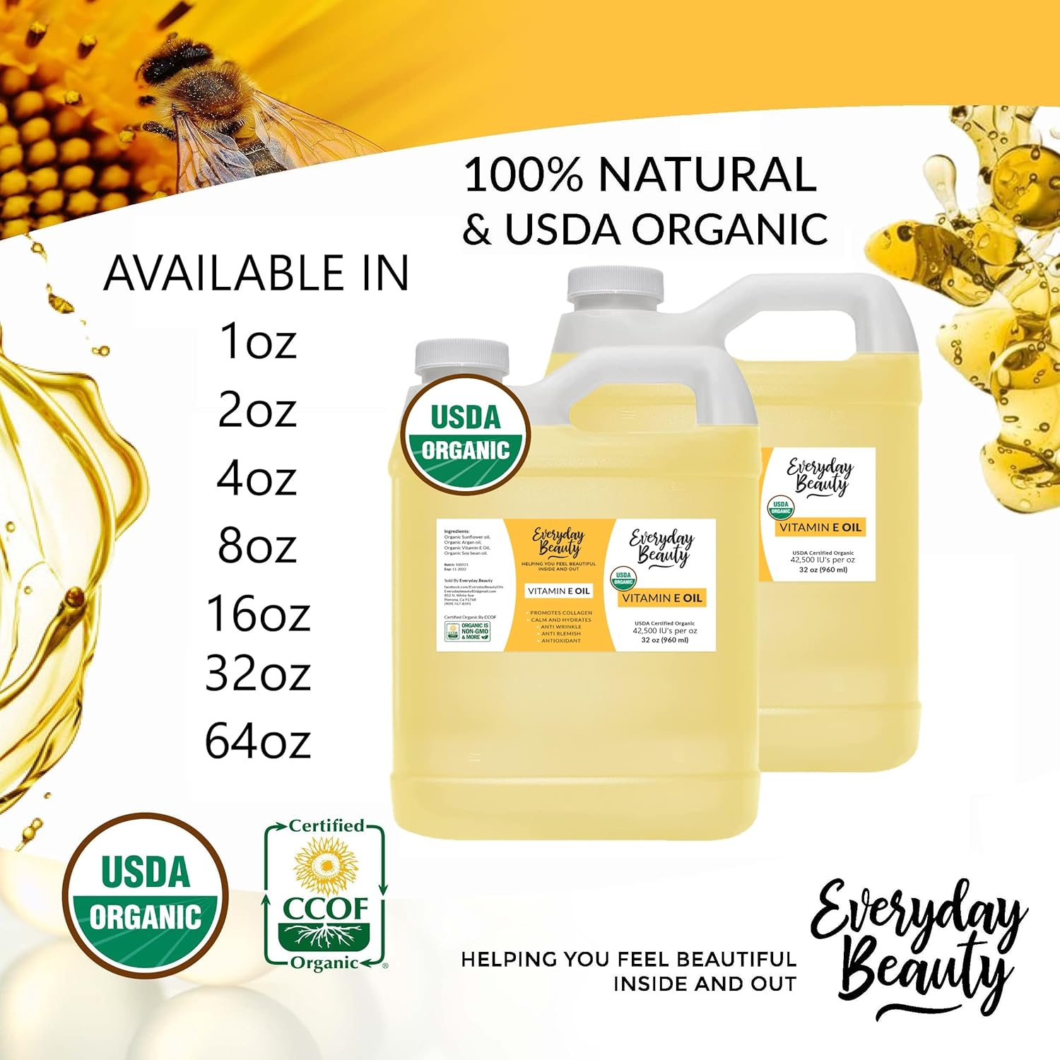 - 100% Natural & USDA Certified Organic Vitamin E