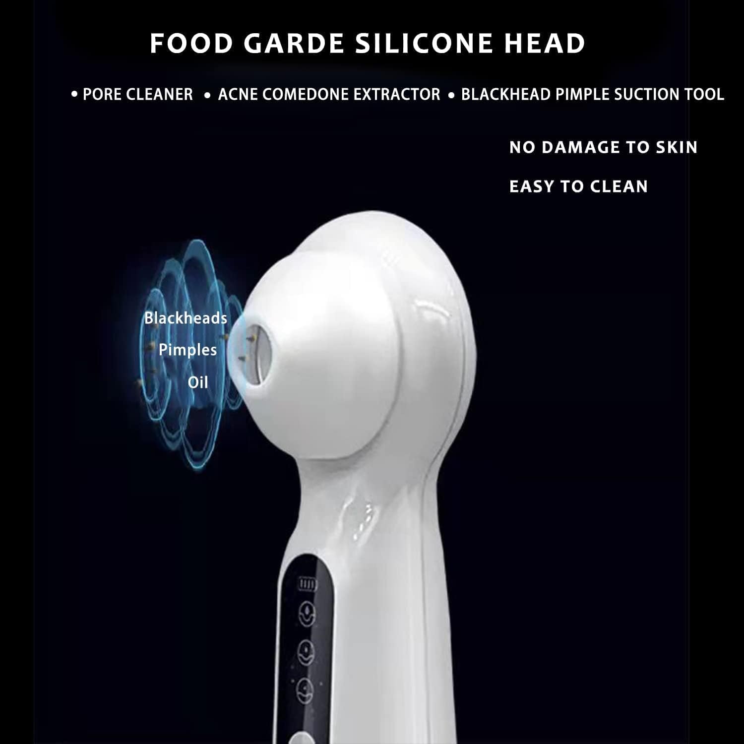 • User-Friendly & Safe: Featuring a food-grade silicone head, our Blackhead Remover ensures no harm to your pores and skin. It's easy to clean, simple to operate, and compact enough for home or travel use.
