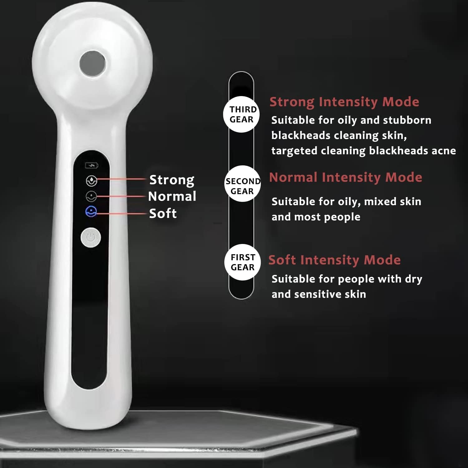 • Skin Type Customization: Equipped with 3 distinct cleaning modes - strong, medium, and soft - this vacuum cleaner suction tool is designed to cater to all skin types. Simply choose the mode that best suits your skin.