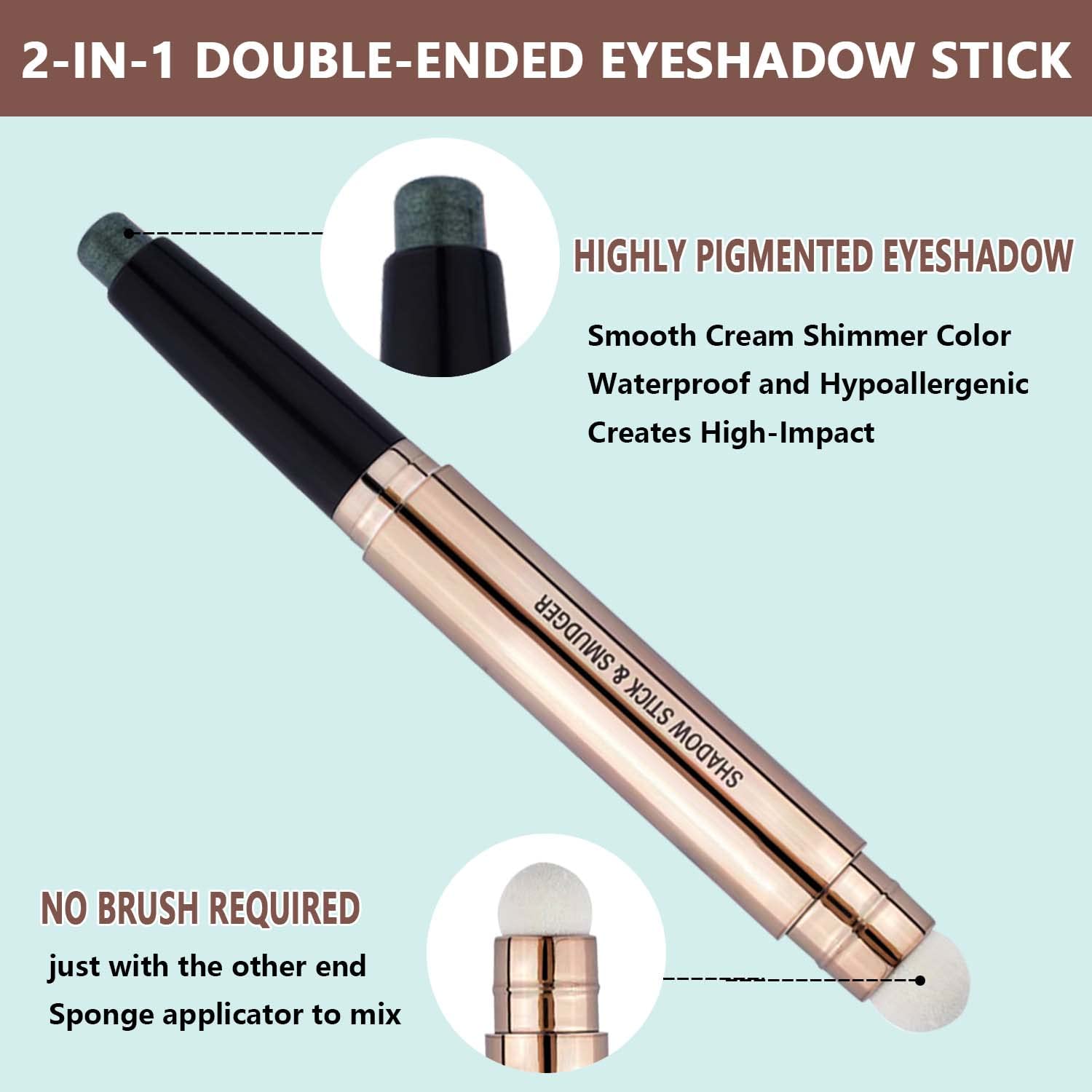 • 2 in1 Eyeshadow Stick . Each eyeshadow stick comes with a soft brush that blends eyeshadow better without crossing colors. The soft brush is easier to mix, and does not hurt your skin. The twist design is easy to control the length of eye shadow stick makeup. Quick application for both professional makeup and beginners.