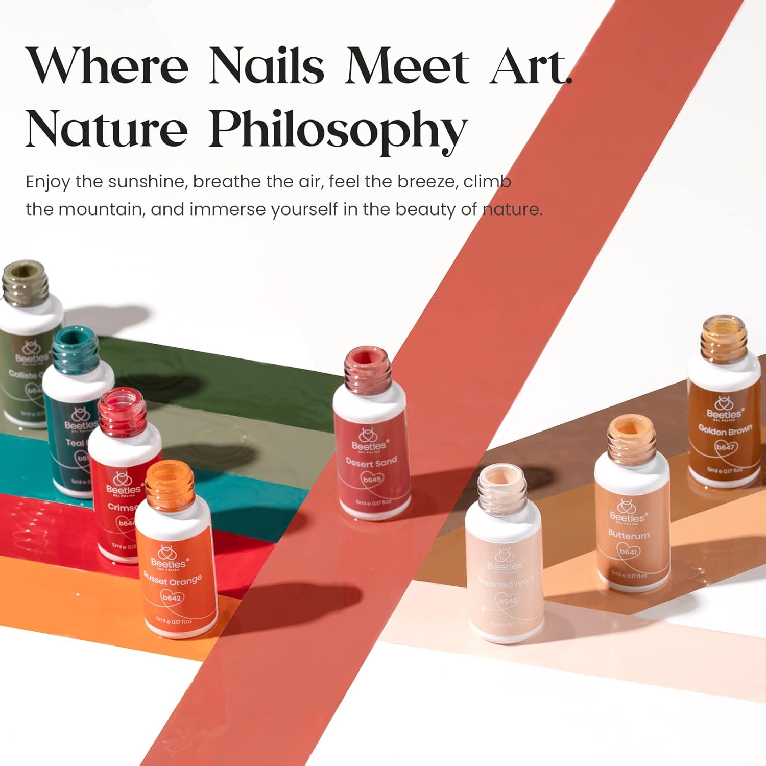 - Beetles Nature Philosophy Gel Art Set: Beetles Liner Gel Art Set includes 12 gorgeous and popular colors, such as Bright White, Summer Blonde, Mecca Orange, and Emerald Green Colors, perfect for those trendy squiggly lines and abstract and popular painting also works perfectly for adding a French line! With the built-in thin brushes, you don't have to get out your set of brushes for adding details and lines. Color Numbers are: b639/b640/b641/b642/b643/b644/b645/b646/b647/b648/b649/b650.
