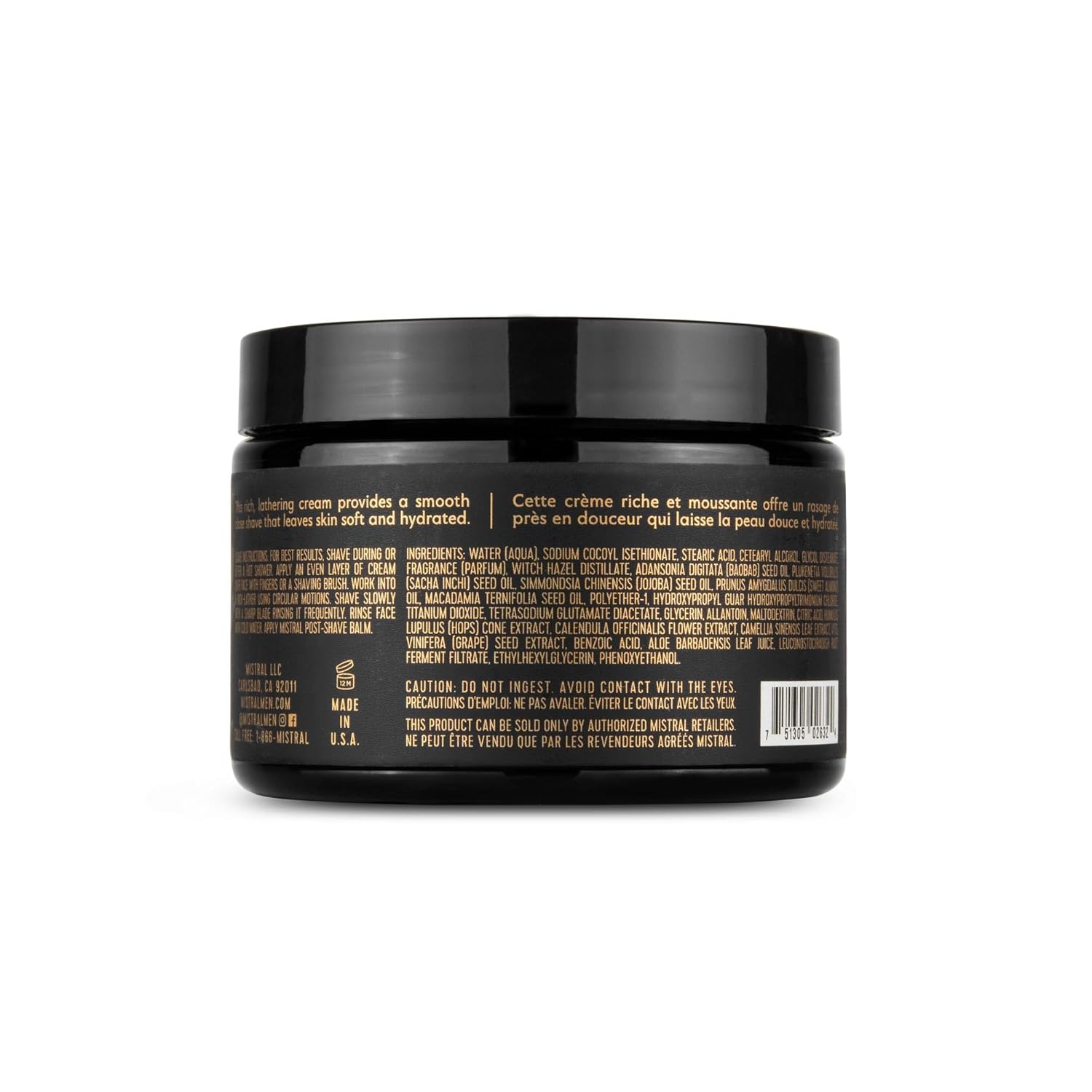 Mistral Bourbon Vanilla Shaving Cream for Men | Smooth Triple Layered Foam | Men’s Shave Cream with Organic Plant Extracts | pH-balanced, Phthalates & Paraben-Free | Made in USA. 9oz Tub
