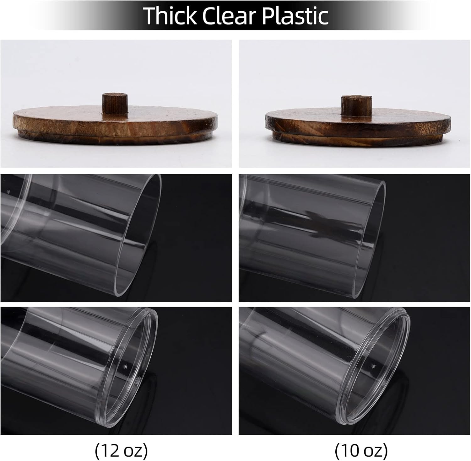 Tbestmax 4 Pack Qtip Holder Dispenser Cotton Ball, Cotton Swab, Floss - 12oz, 10 oz Clear Plastic Apothecary Jars for Bathroom Organizer and Storage Containers (Brown Wood Lids)