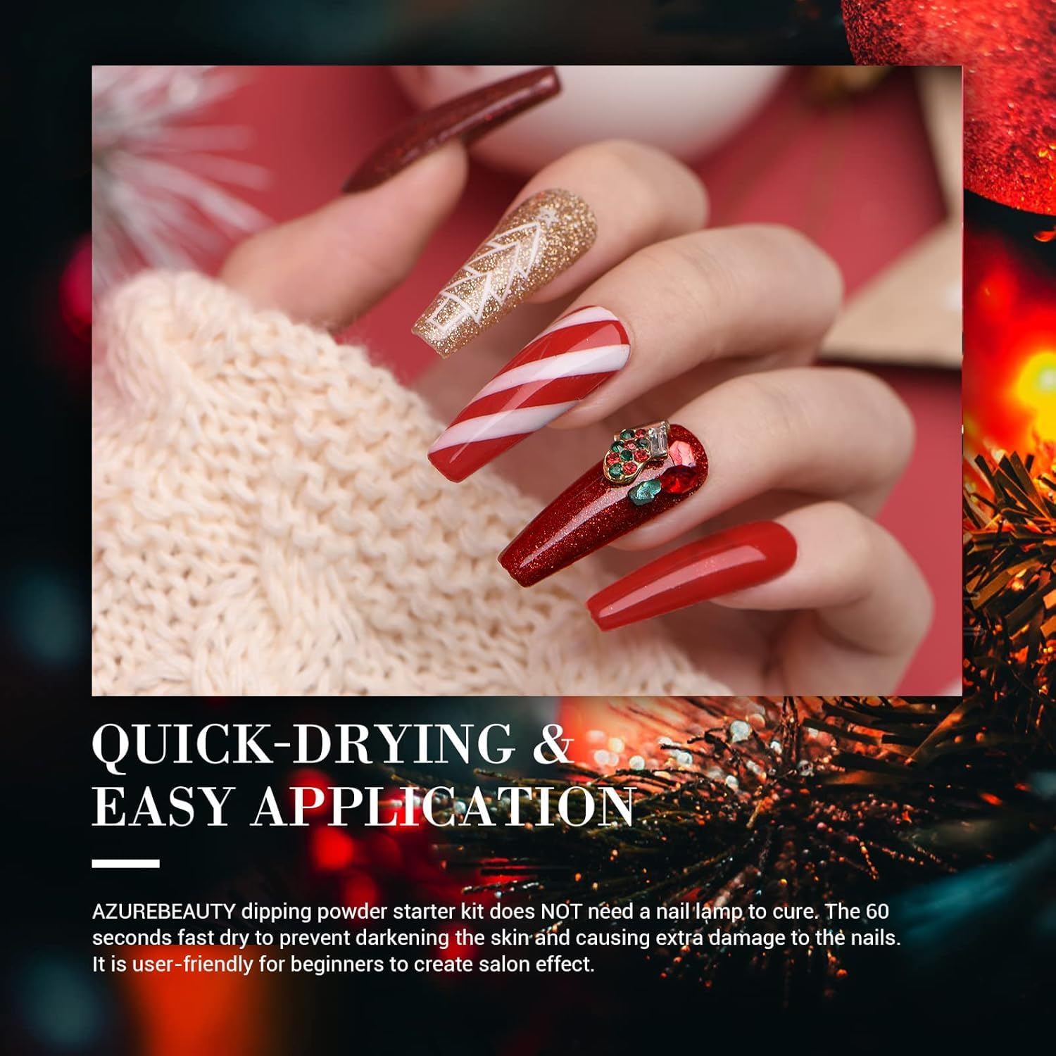 - Healthy & Nail-Friendly: AZUREBEAUTY dipping powder kit made with healthy ingredients, proven unique formula complex of rich calcium and vitamins, to gives nails long-lasting strength, which would not damage your nail bed, and is available for air-dry